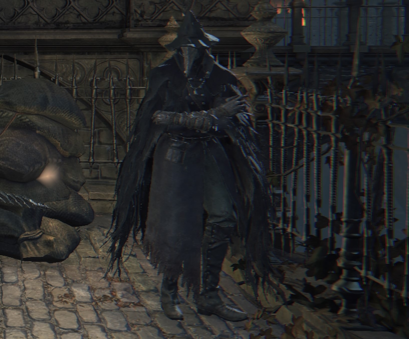 ヤーナム市街に佇むペストマスクが印象的な女狩人。話しかけると後輩であるプレイヤーにアイテムとジェスチャーをくれる