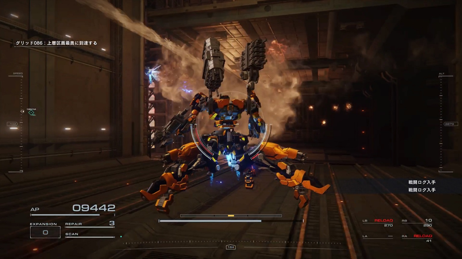 - 4機の無人ACを引き連れたボスACとまず1戦。まだ真っ当なAC戦。前座だけにリペアは使わない。