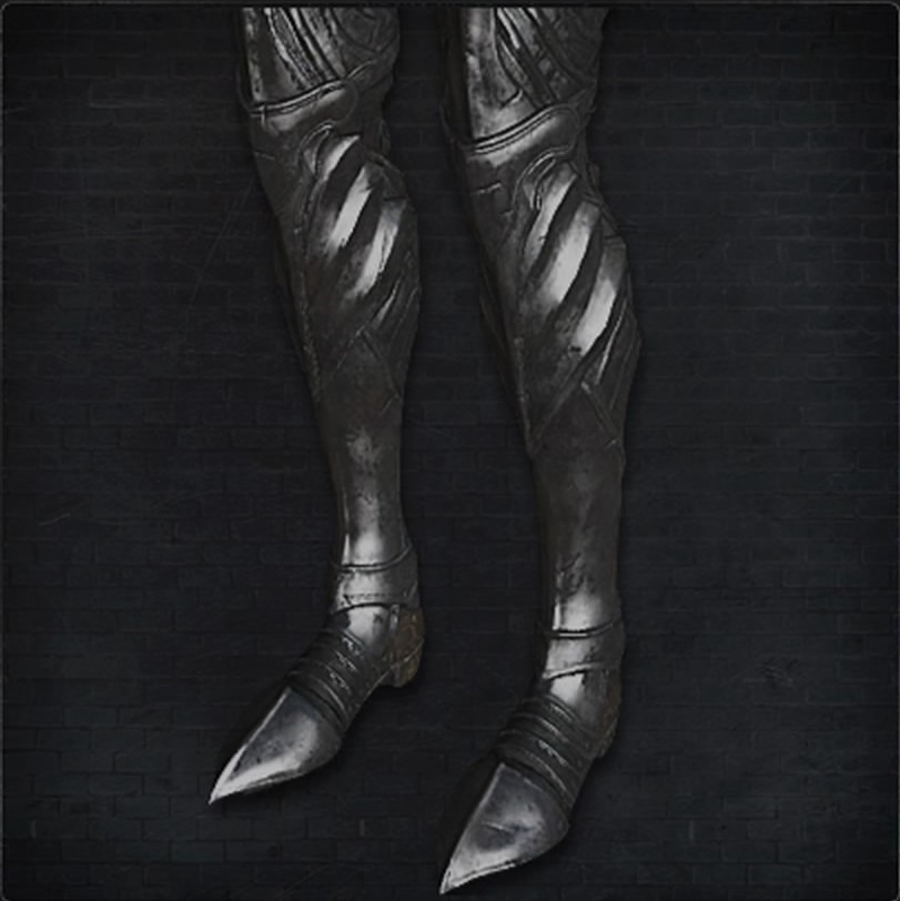 | カインの足甲 | カインハーストの血の女王 アンナリーゼを守る近衛騎士たちが用いた銀の足甲 ごく薄く、布のごとき銀製の鎧は、悪意ある血を弾くとされ 彼ら近衛騎士は、これを頼り女王のために「血の狩人」となる いつか彼女が、その手に血の赤子を抱くために | |||||||||||