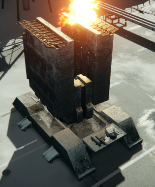 弱点は2か所。正面のアーム間にある赤い出銑口と、頂上にある高炉の投入口の銑鉄の2か所である。前者はアームで防がれることがあり、後者は通る射角が狭めで噴火にも気を付ける必要がある。