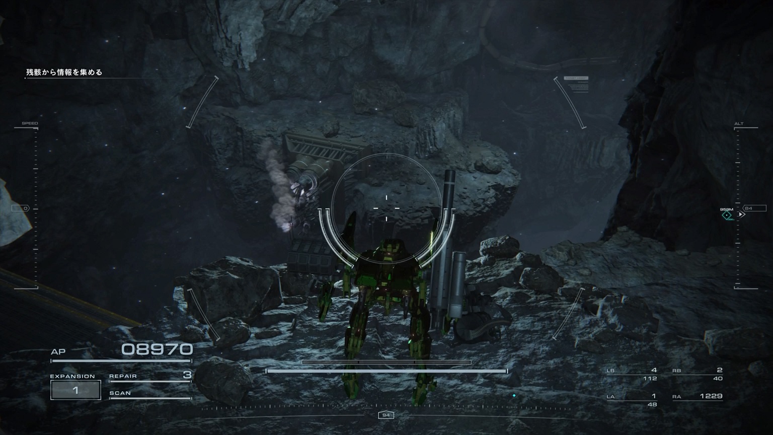 - 4機の無人ACを引き連れたボスACとまず1戦。まだ真っ当なAC戦。前座だけにリペアは使わない。