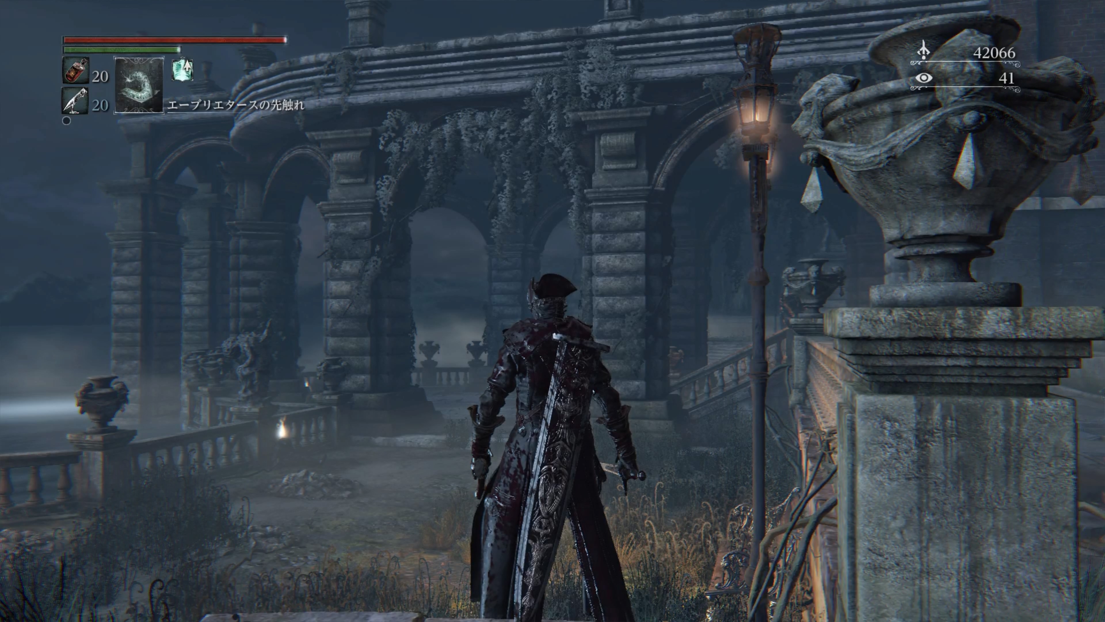 - なお、月見台の手前でメンシスのダミアーン、もしくは連盟のカレルを装備することで灯りすぐ近くの段差の下と、学徒衣装がある宝箱の近くでマダラスの弟と古狩人ヘンリックを召喚できるが、何れもロマ第2形態の隕石攻撃で即死しがちなので弾避け以上の役には立ってくれない。