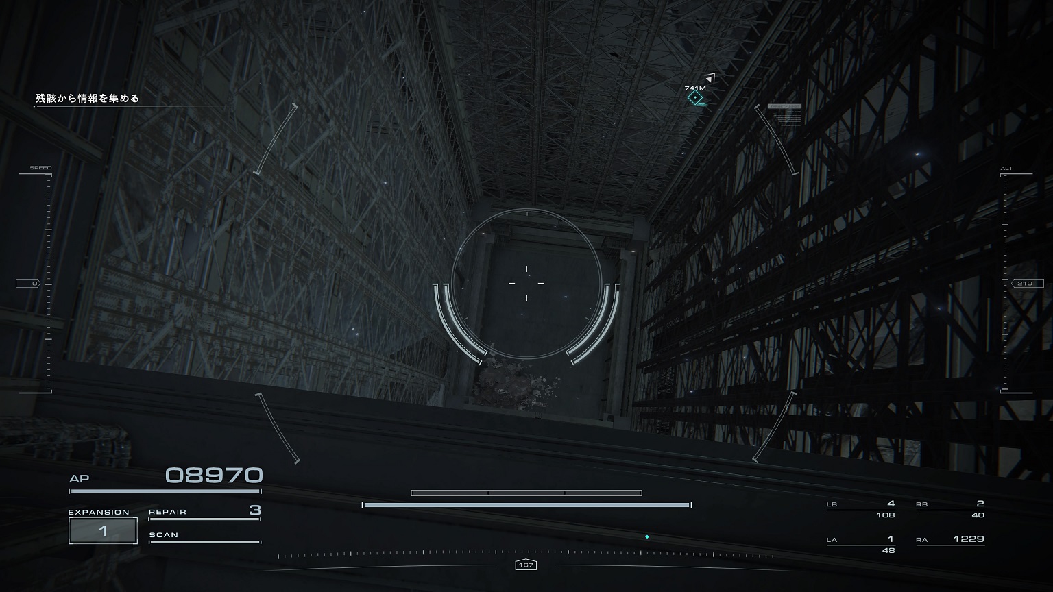 - 4機の無人ACを引き連れたボスACとまず1戦。まだ真っ当なAC戦。前座だけにリペアは使わない。