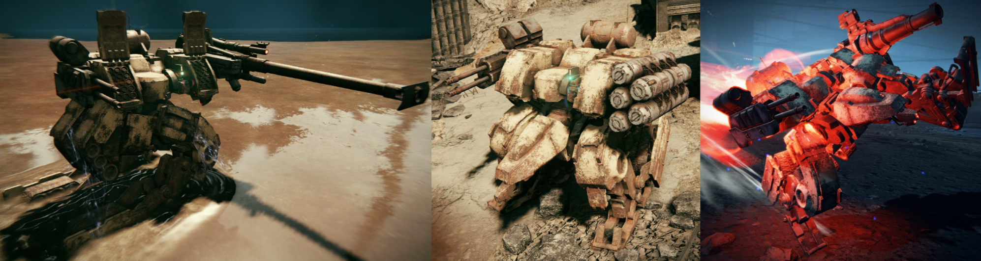 武装は連装マシンガンと胴体左右に内蔵されたミサイルが共通、バリエーションとして左からデトネートキャノン、垂直ミサイル、グレネードキャノンが存在。