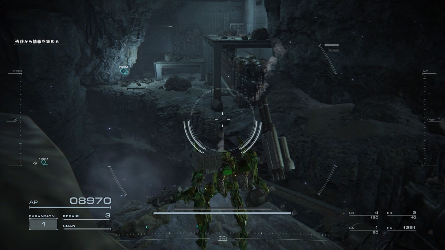 - 4機の無人ACを引き連れたボスACとまず1戦。まだ真っ当なAC戦。前座だけにリペアは使わない。