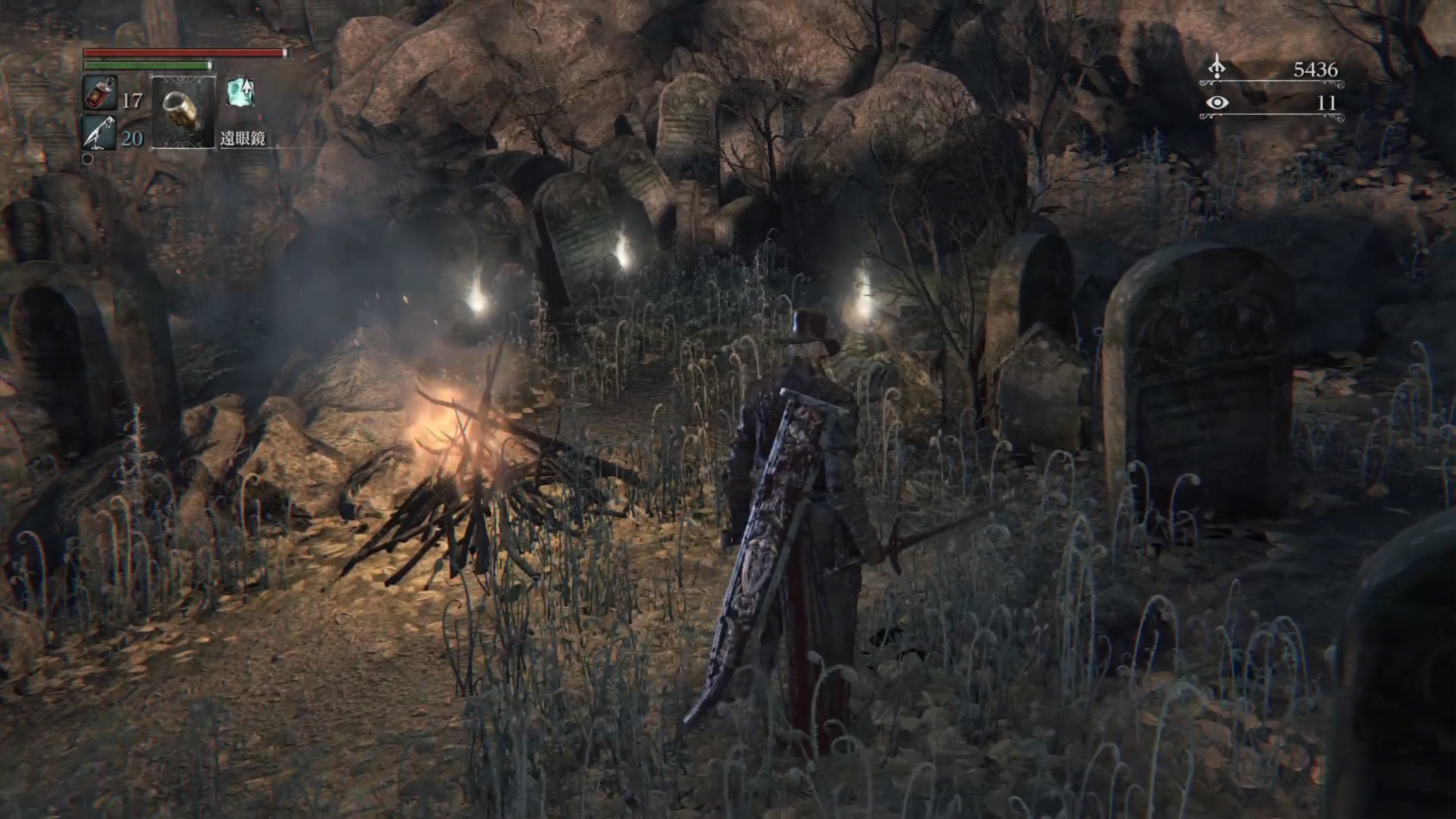 - 出口付近には更に1体の猟銃と2体の狩猟犬が居り、更に奥まで行くとドアがあり、その先がヘムウィックの墓地街である。まずは正面の灯りを点灯しよう。