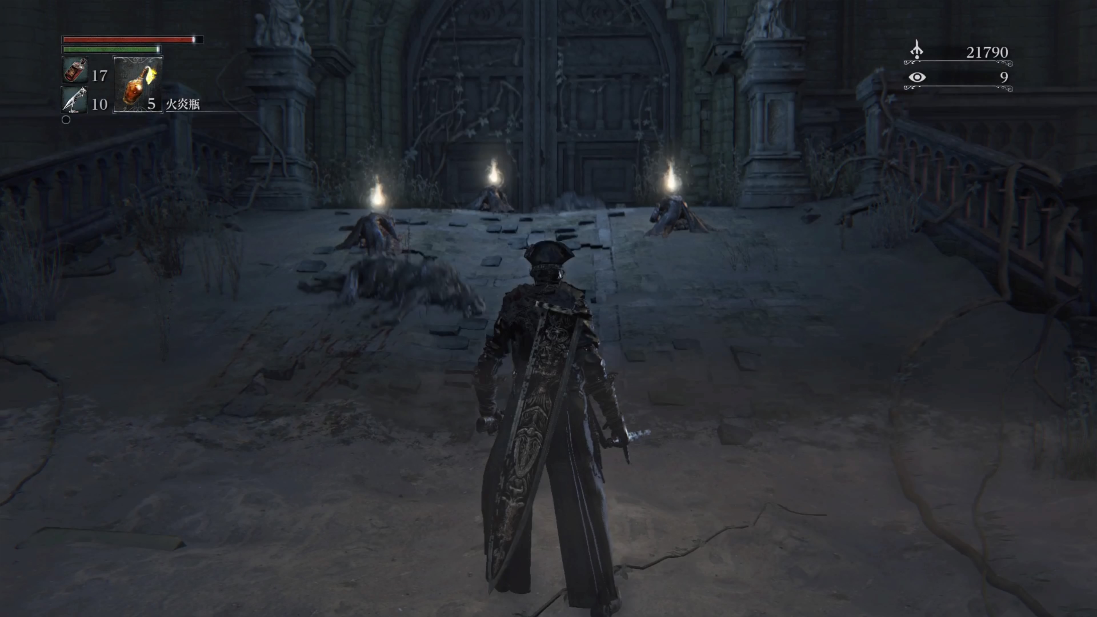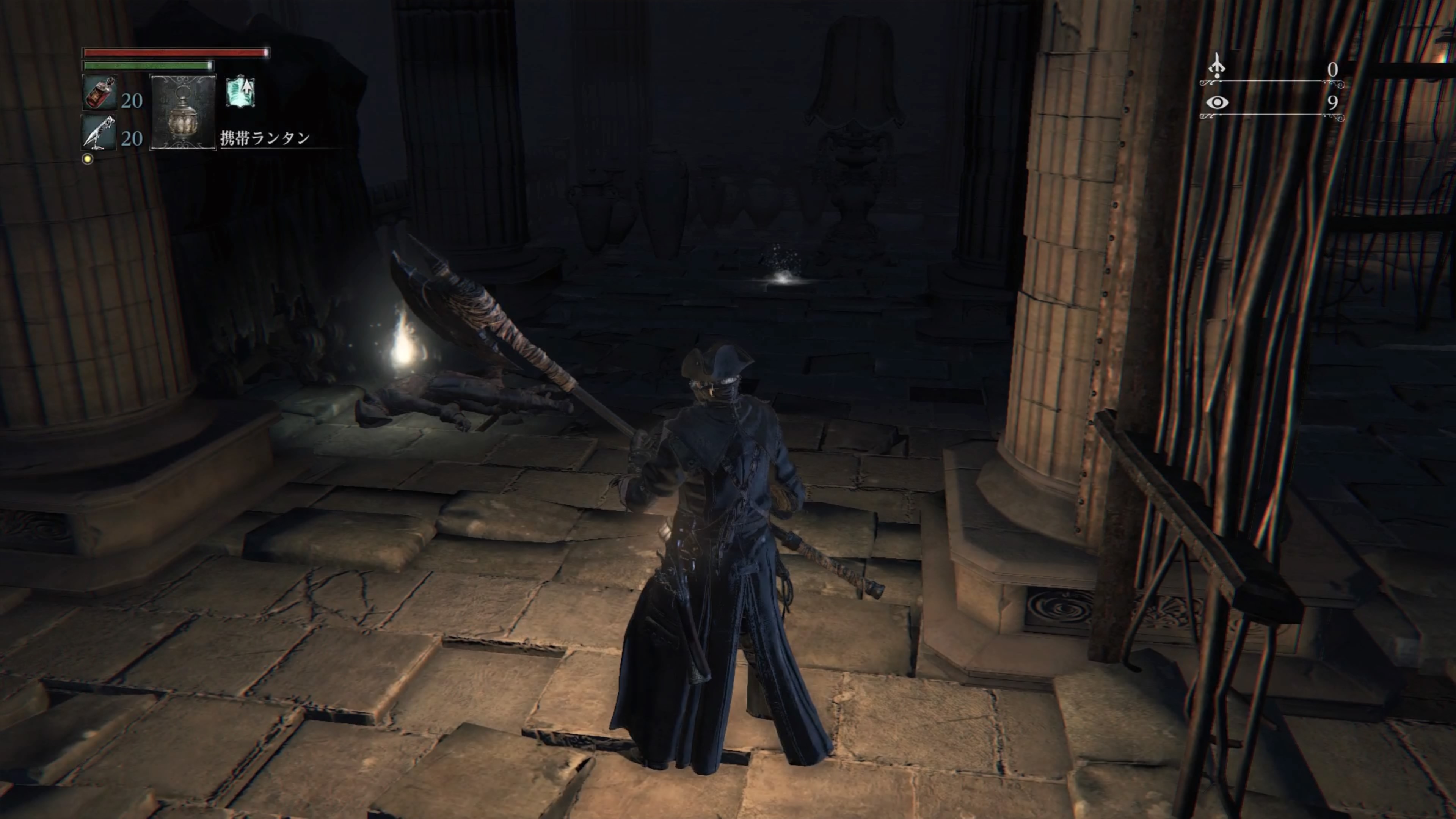 - 灯りで目覚めてから間近の人さらい2体を倒すと合計血の遺志約3000と、1体につき血石の欠片2つか血石の二欠片1つ、稀に雷光ヤスリをドロップする。