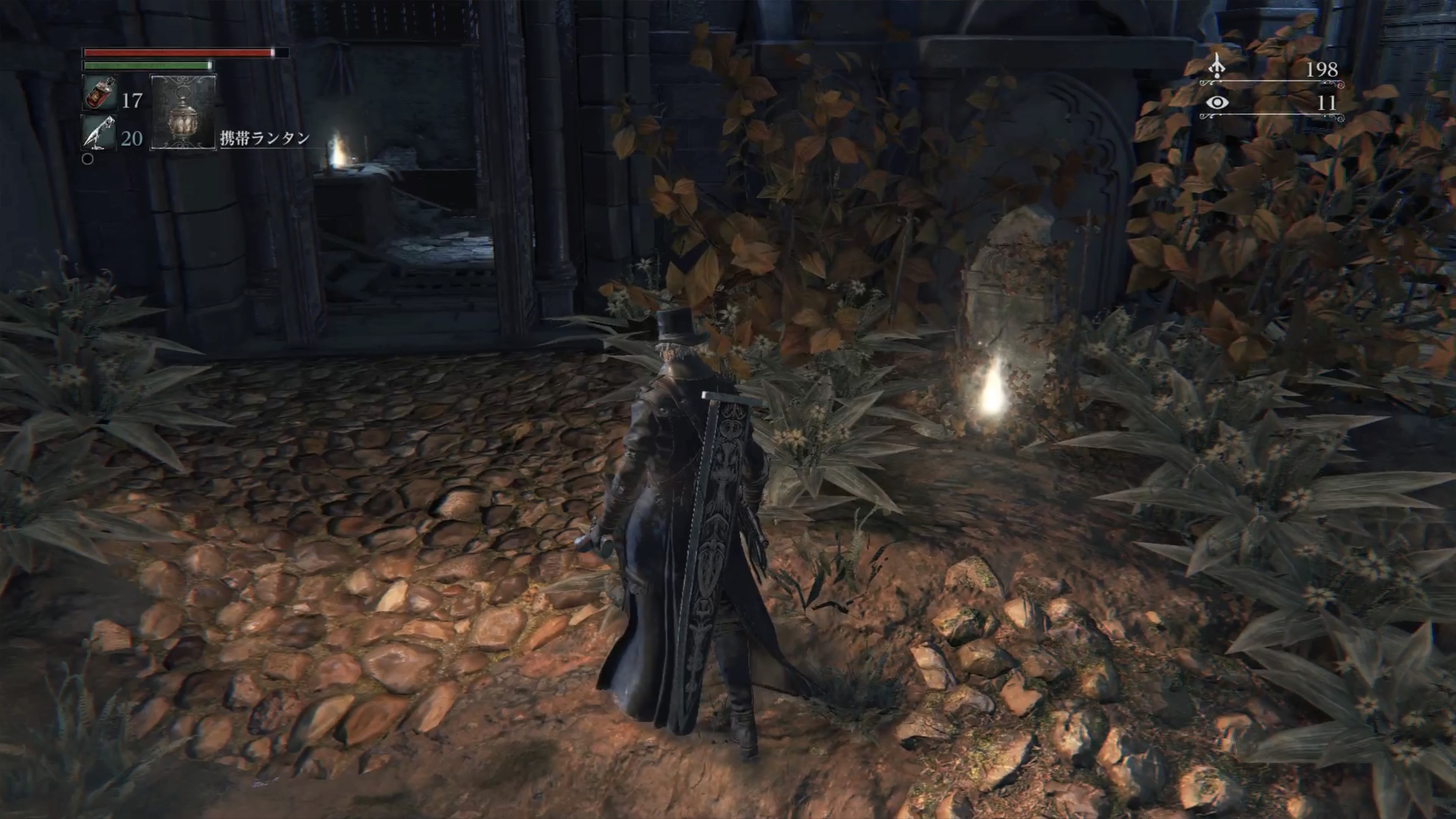 - ドアを開ければ下り階段、その先に進めばあるのは狩人の夢とよく似た小エリア。入ると啓蒙2を獲得する。