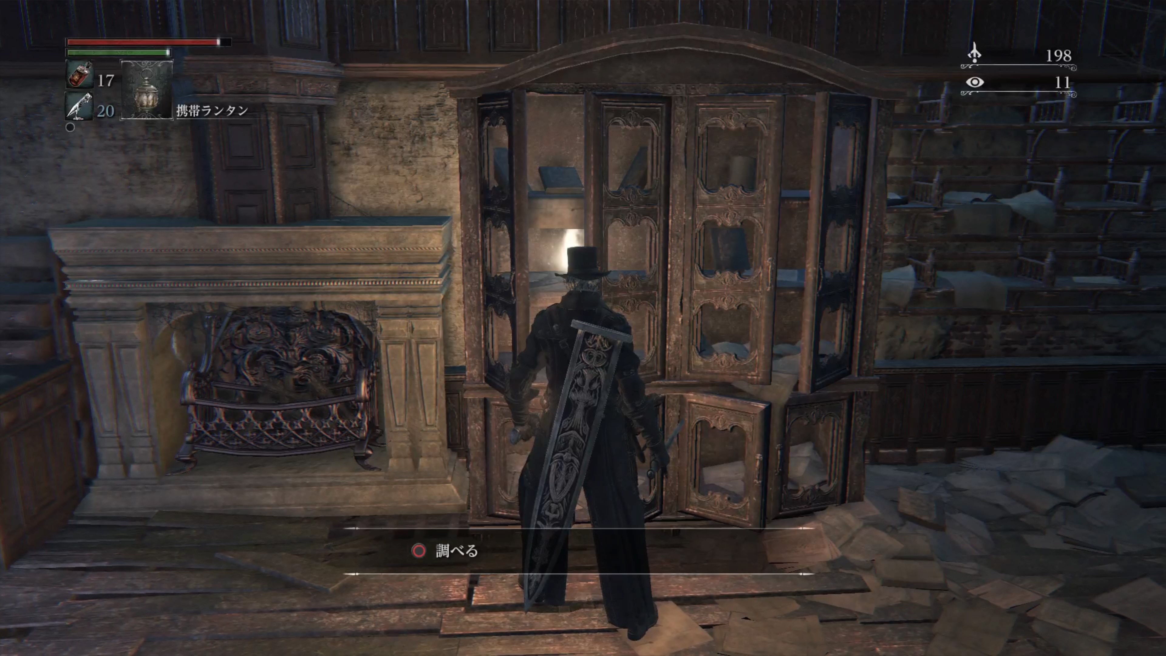 - 敵もNPCも居らず、あちこちにアイテムが落ちてだけのエリアである。探索が終われば工房の中の灯りから狩人の夢に戻っても良い。