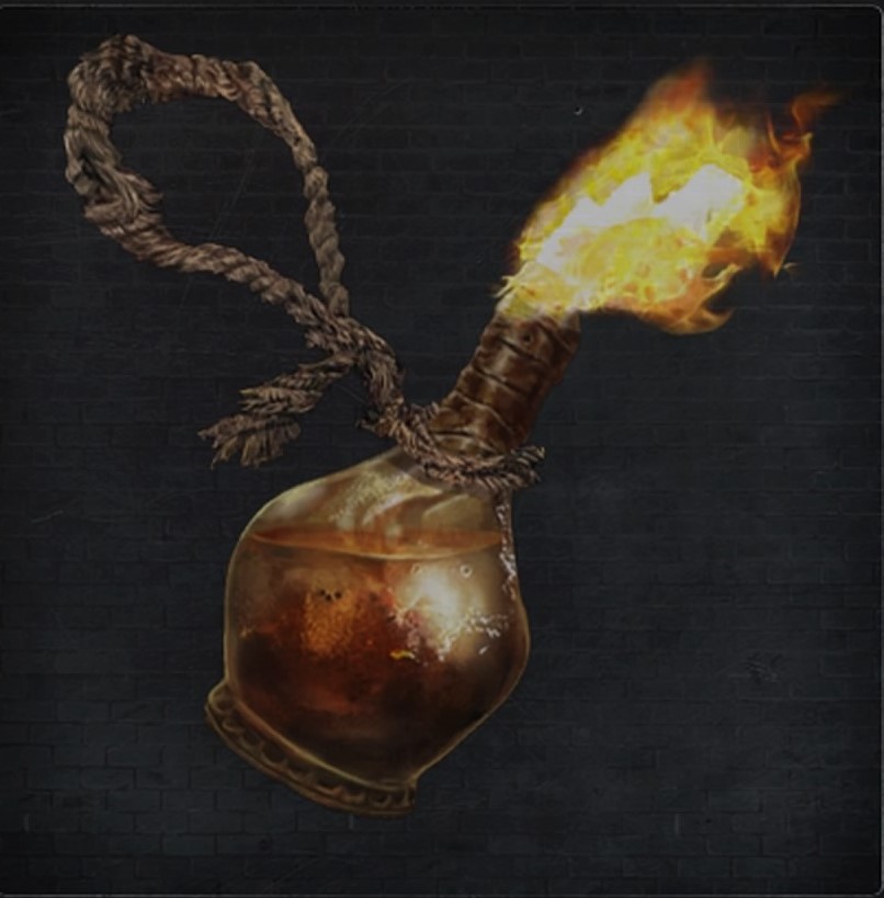 | 投げつけると激しく炎上する火炎瓶 古くから工房にある狩道具の1つ かつての旧市街の悲劇でそうであったように 病の浄化の偏見もあり、獣狩りに炎はつきものである だからだろうか、ある種の獣は病的に炎を恐れるという | 能力補正 | |||||||