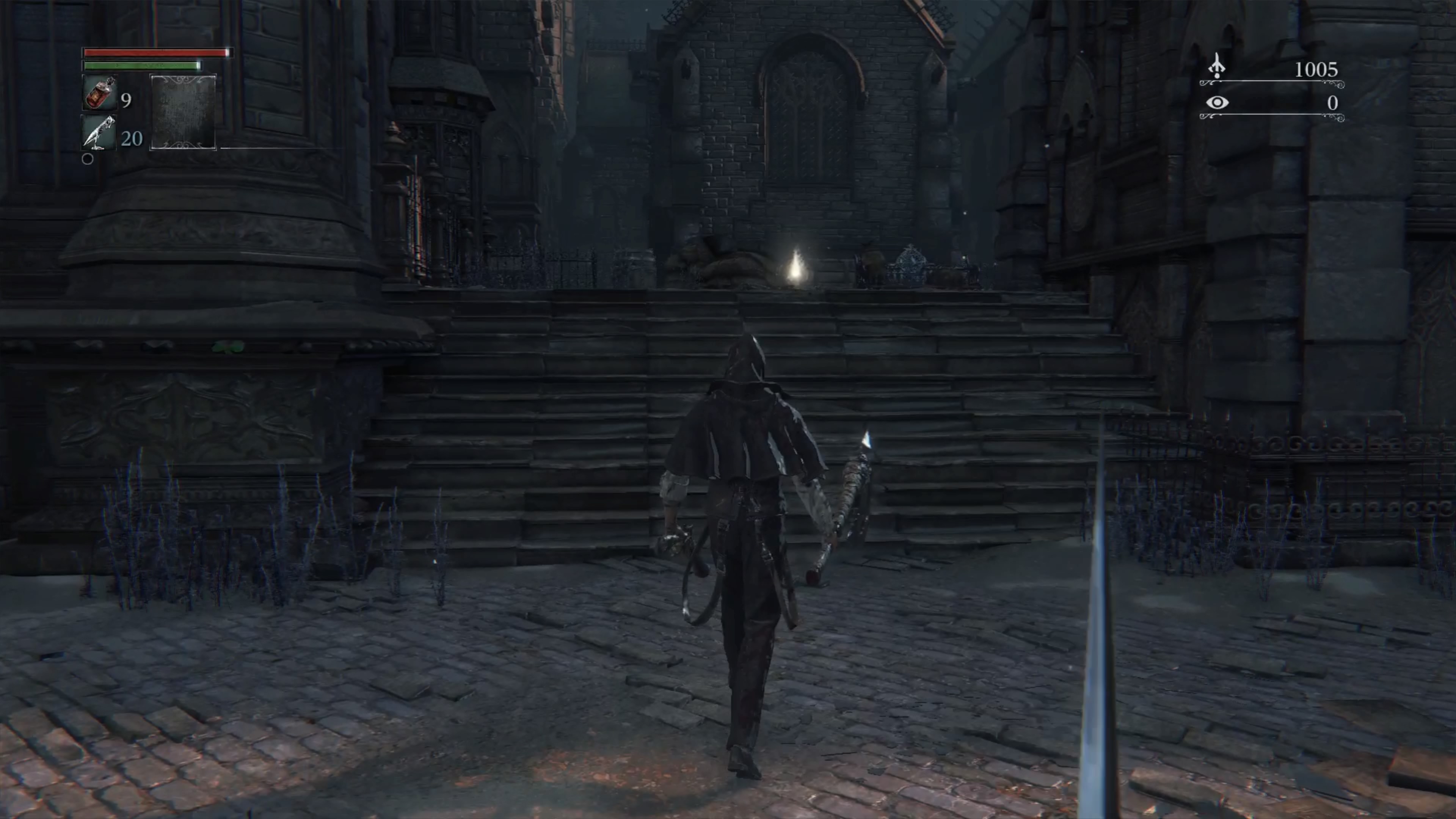 - ガスコイン神父かせいけもを撃破するまでは概ねここから探索を開始する事になるため、この灯りの前の景色はそれこそ「親の顔より見た景色」となるだろう。
