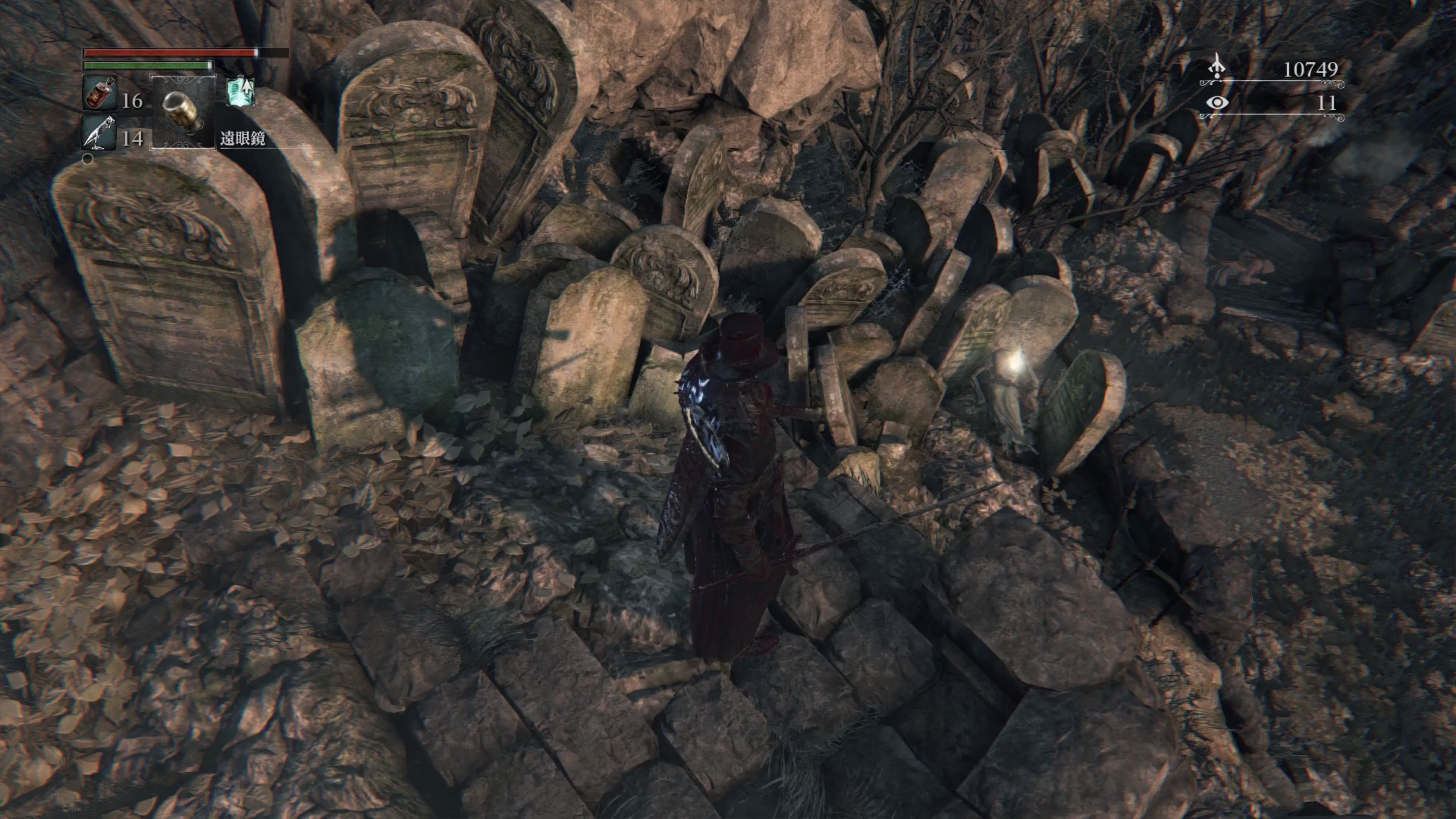| 濃厚な死血【4】 1 | ゲート操作レバーの手前、ブロックと墓石に囲まれた辺り |
