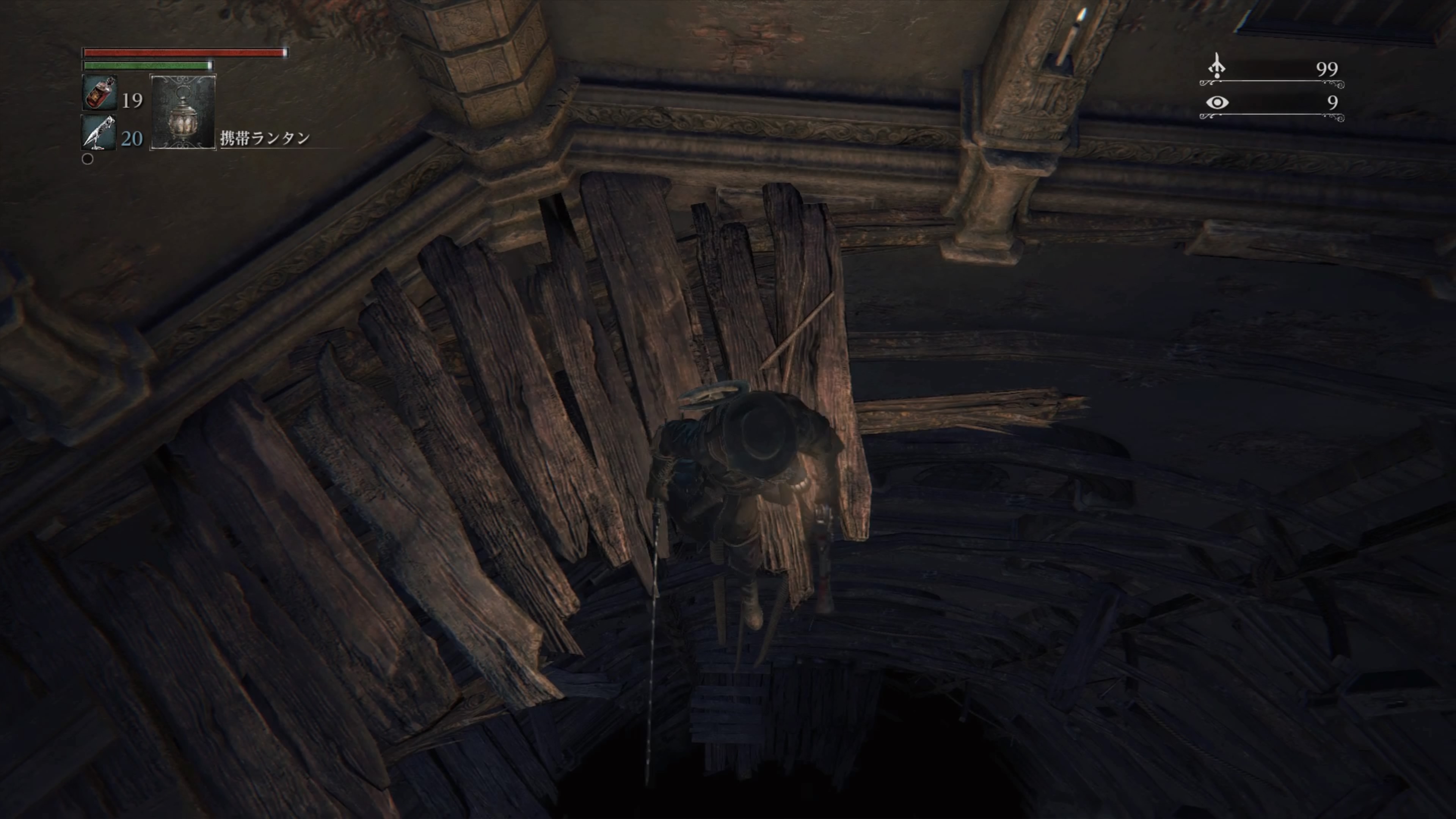 - ドアを開ければ下り階段、その先に進めばあるのは狩人の夢とよく似た小エリア。入ると啓蒙2を獲得する。