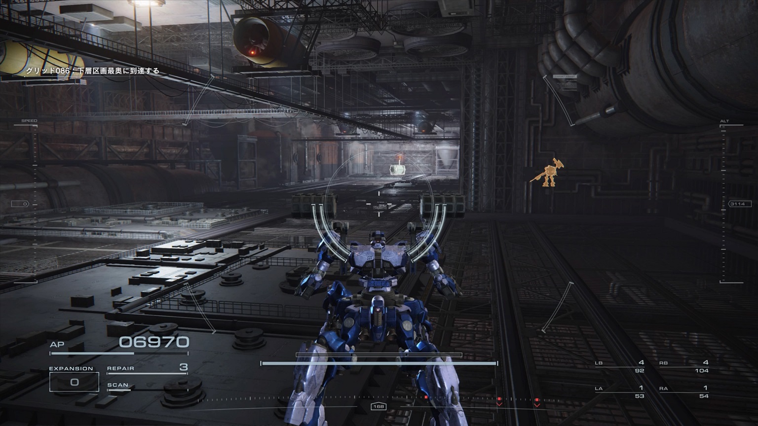 - 4機の無人ACを引き連れたボスACとまず1戦。まだ真っ当なAC戦。前座だけにリペアは使わない。
