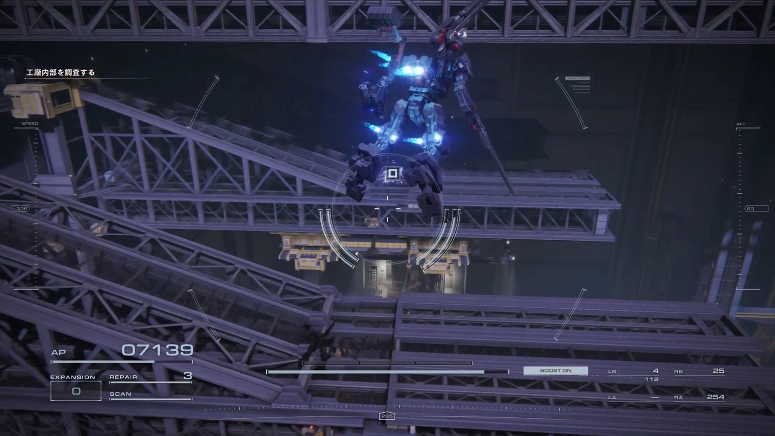 - 4機の無人ACを引き連れたボスACとまず1戦。まだ真っ当なAC戦。前座だけにリペアは使わない。
