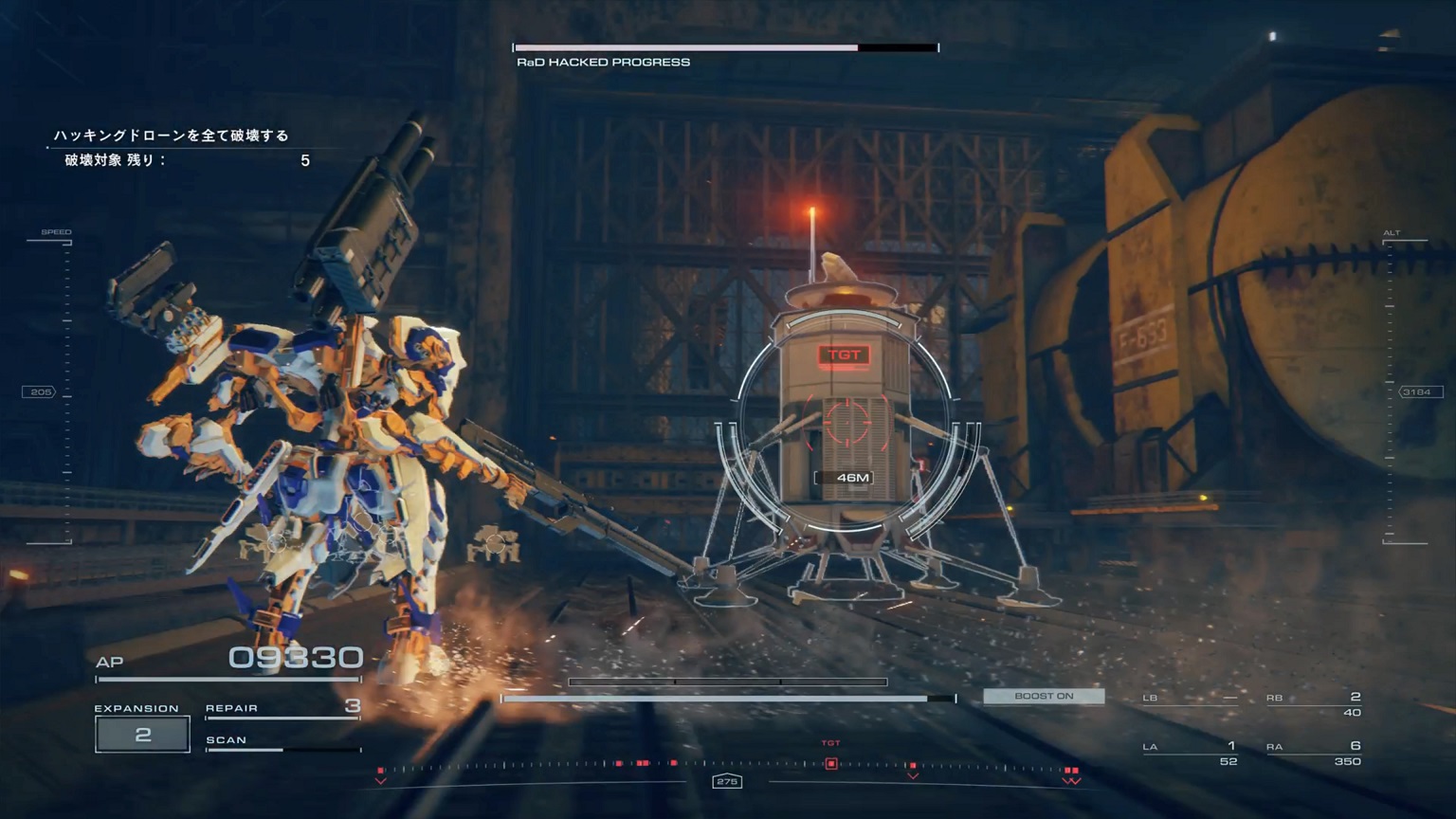 - 4機の無人ACを引き連れたボスACとまず1戦。まだ真っ当なAC戦。前座だけにリペアは使わない。