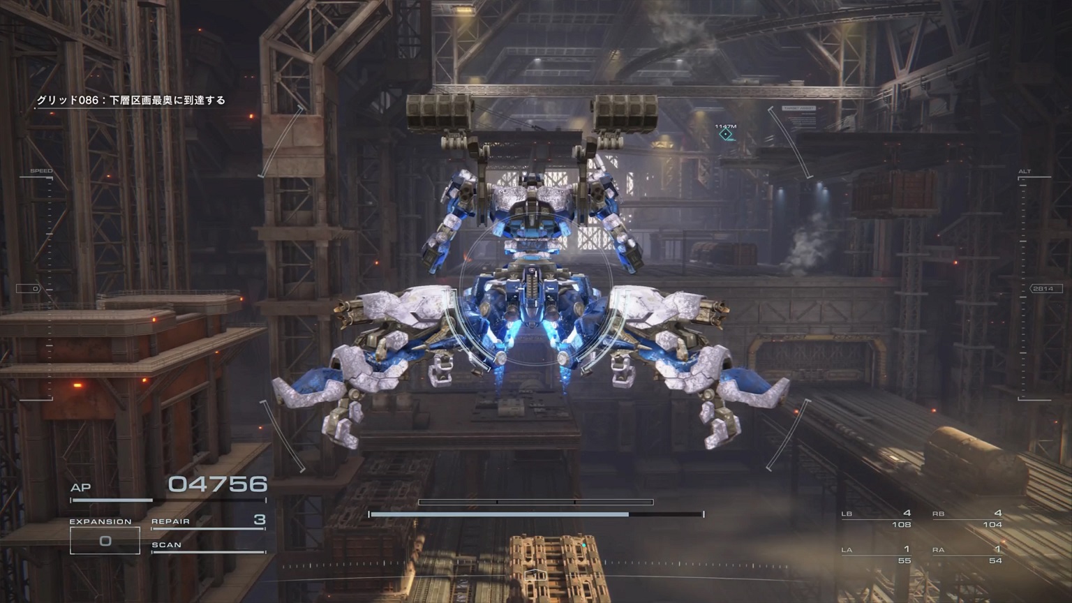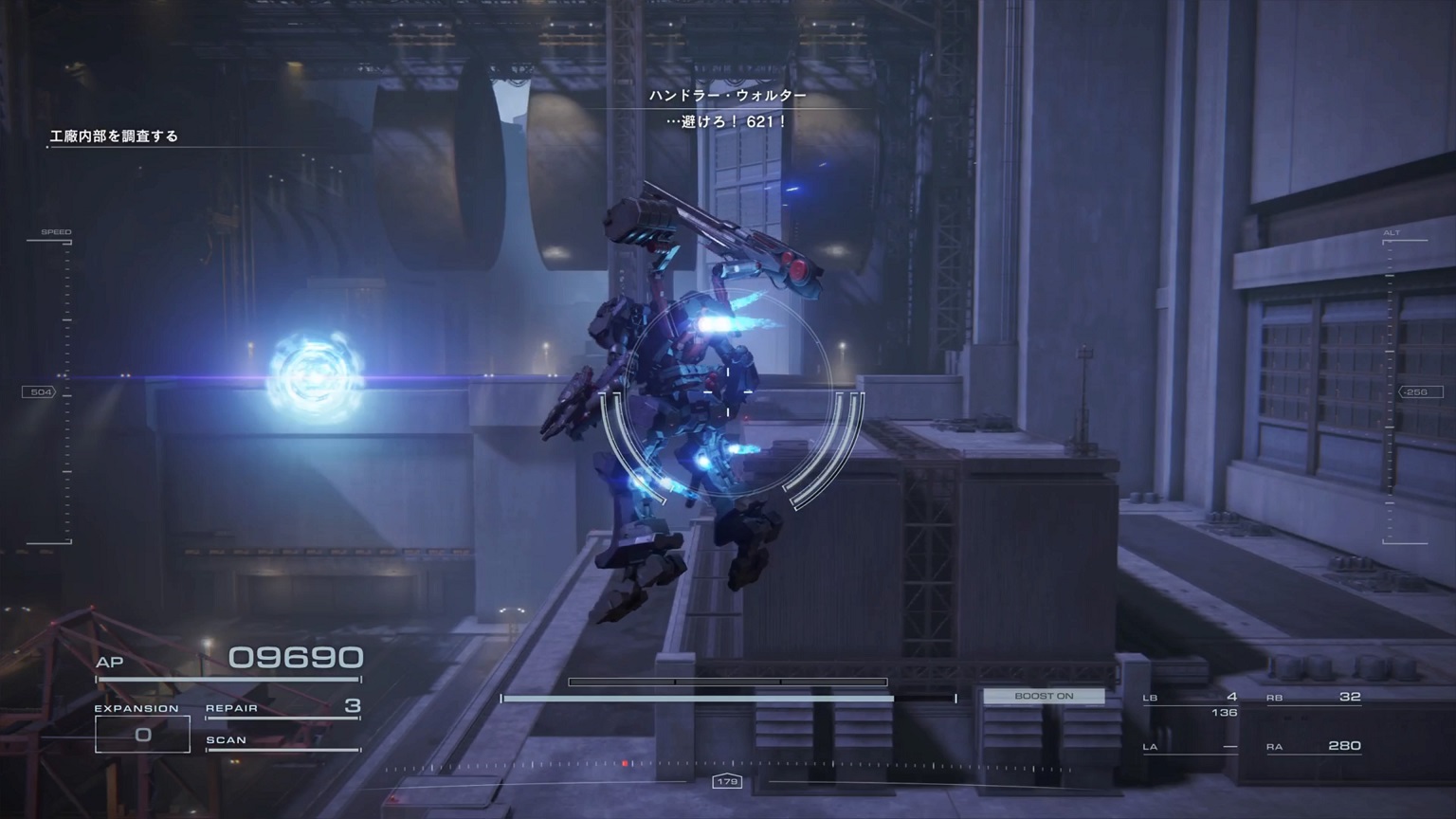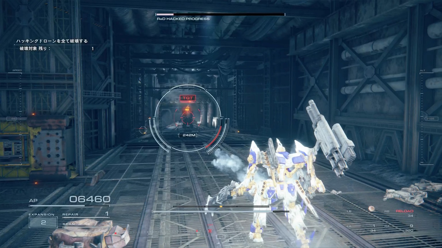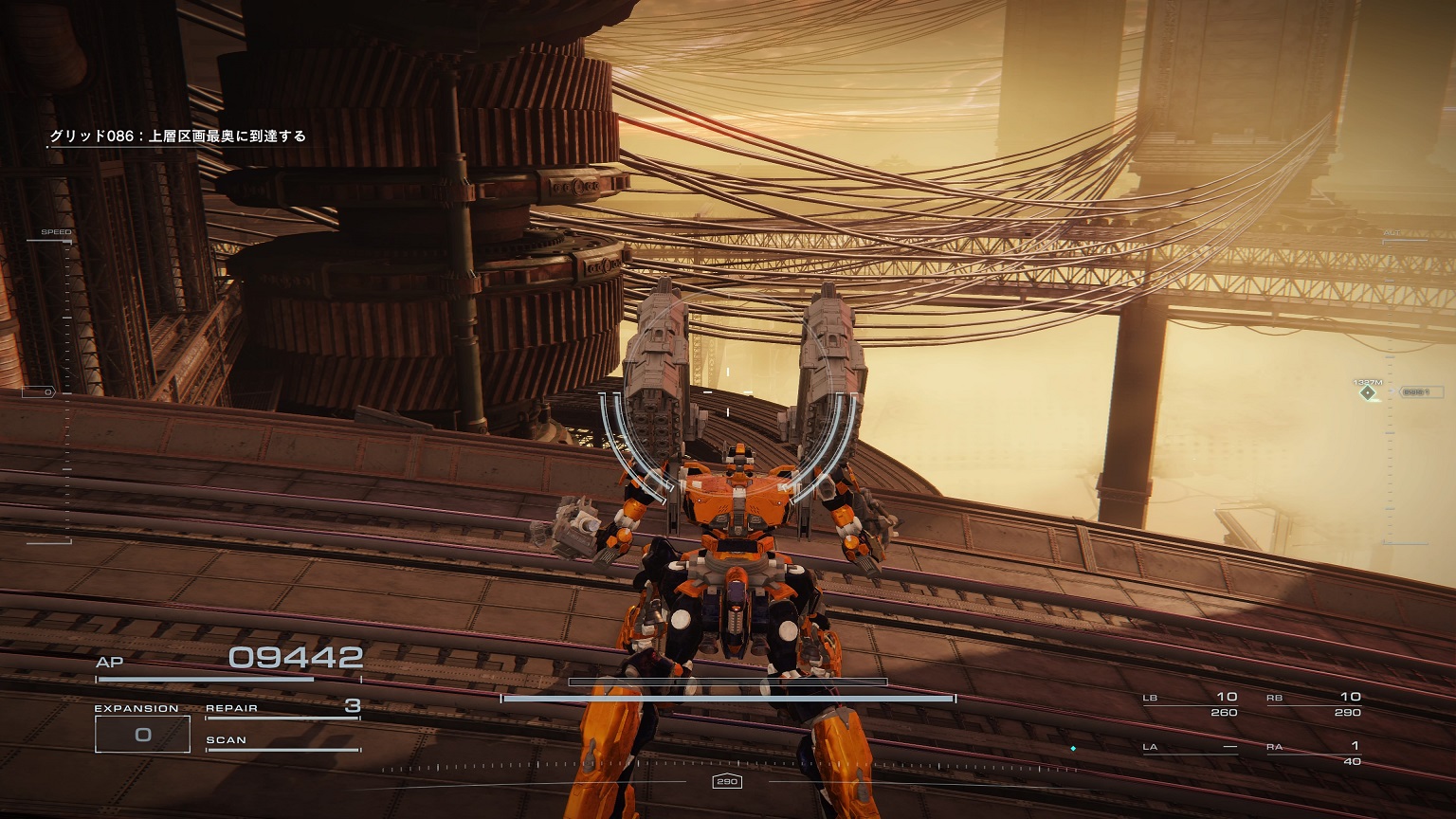 - 4機の無人ACを引き連れたボスACとまず1戦。まだ真っ当なAC戦。前座だけにリペアは使わない。