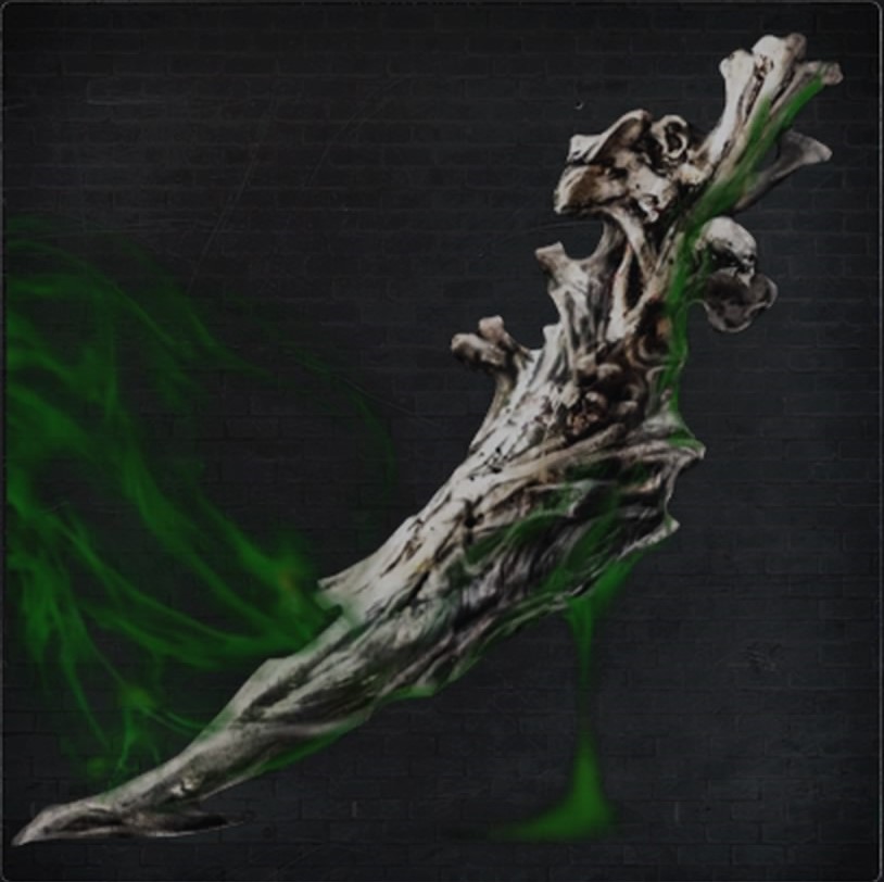 | 怪しげな髄液に塗れた骨の刃 地下遺跡の守り人、特に祭祀者が用いる儀式の品 その緑色の髄液は、一時的認識の麻痺を引き起こし 斬り付けた対象を前後不覚に陥らせる 本来戦闘用ではないためか、その刃は鈍く 深く斬りつける必要があり、またそうすると壊れてしまう | 能力補正 | |||||||