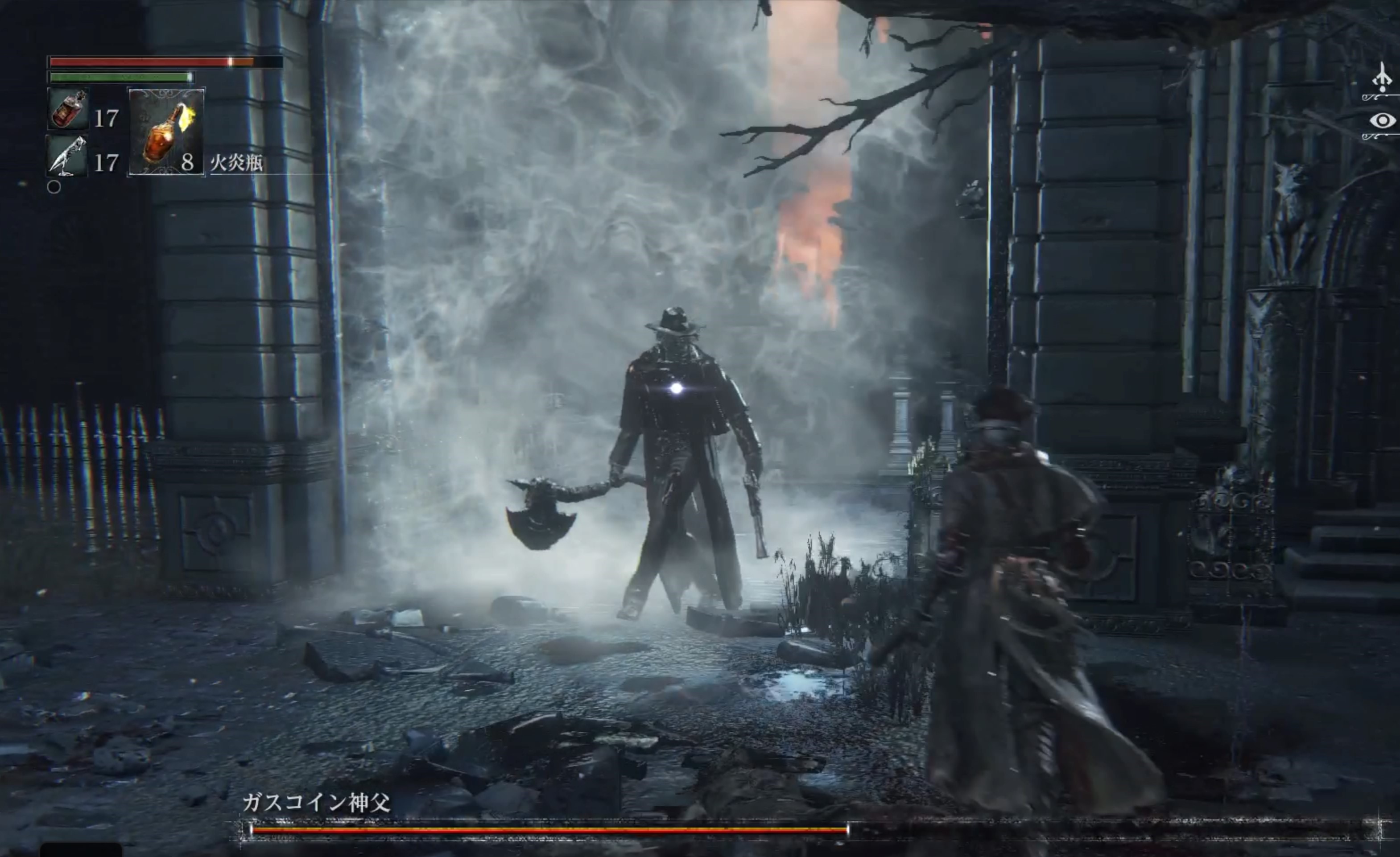 大柄な性質上、ロック状態で斬りかかるとカメラが上に向いてしまって戦い辛くなる。ロックは火炎瓶投擲の時だけにした方が楽かも。