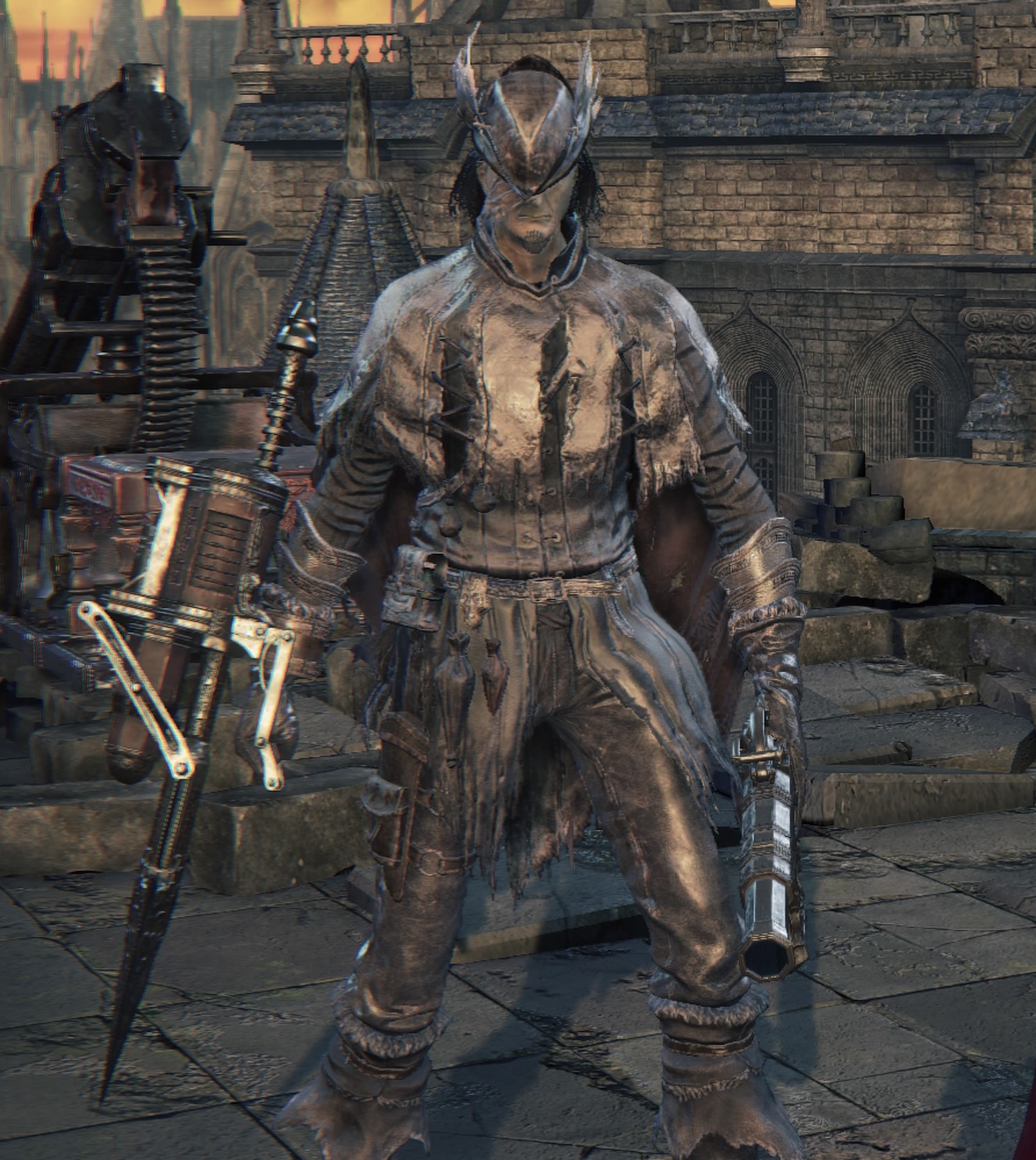 - 武器は仕込み杖と教会の連装銃。更にエーブリエタースの先触れや彼方への呼びかけを使用するなど、聖歌隊との繋がりを感じさせる。ただし衣装は教会の白装束一式。