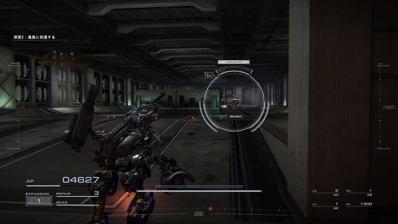 - 4機の無人ACを引き連れたボスACとまず1戦。まだ真っ当なAC戦。前座だけにリペアは使わない。