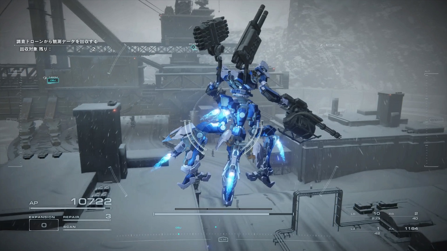 - 4機の無人ACを引き連れたボスACとまず1戦。まだ真っ当なAC戦。前座だけにリペアは使わない。