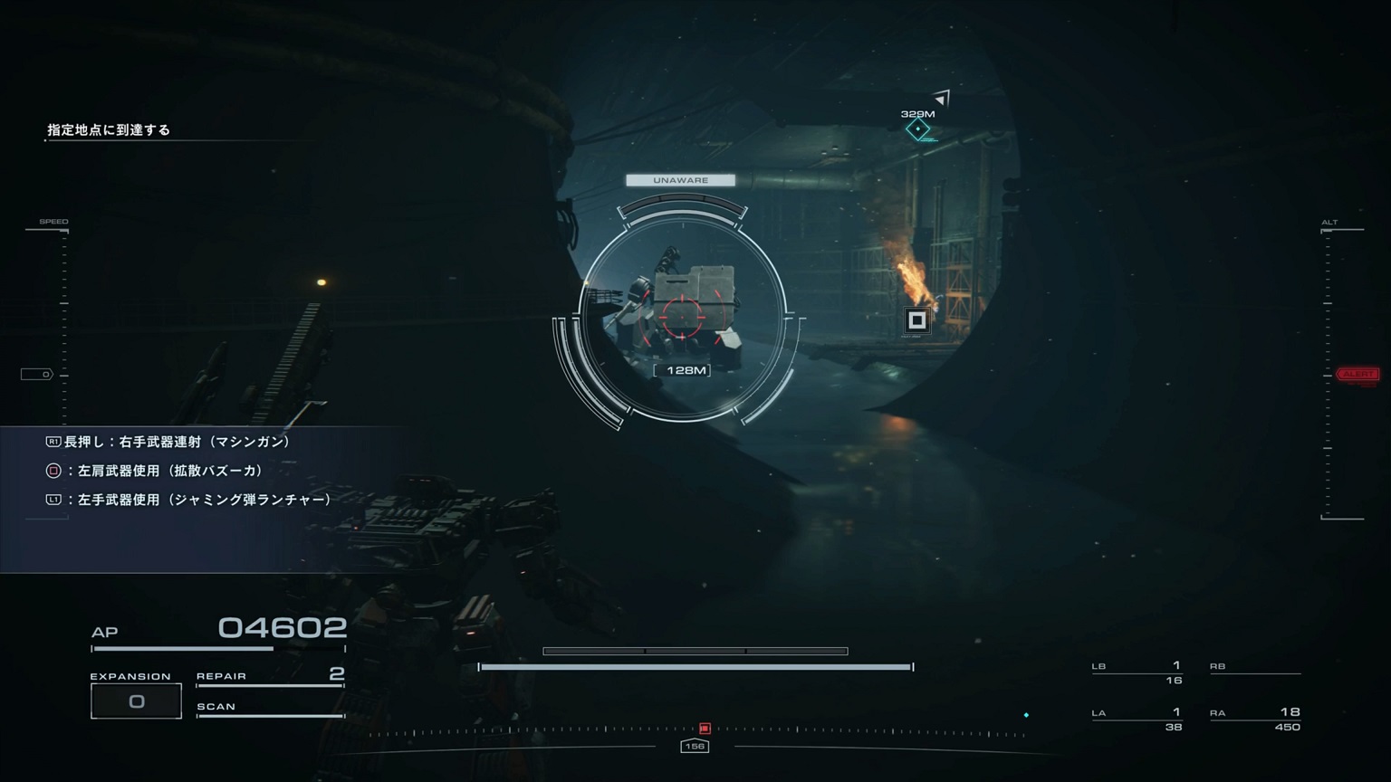 - 4機の無人ACを引き連れたボスACとまず1戦。まだ真っ当なAC戦。前座だけにリペアは使わない。