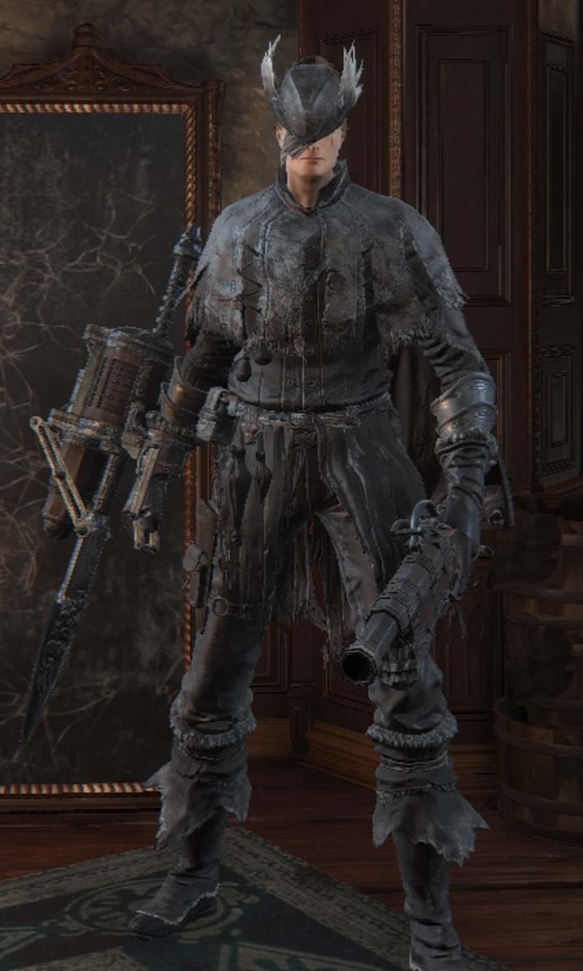 | 灰狼の帽子 | 古狩人デュラの狩装束 ささくれた狼の帽子は、特に象徴的に知られていた 工房の異端「火薬庫」との交わりで知られるデュラは ごく優しく、そして愚かな男だった 故に旧市街の惨状に絶望し、狩人であることを止めたのだ | |||||||||||