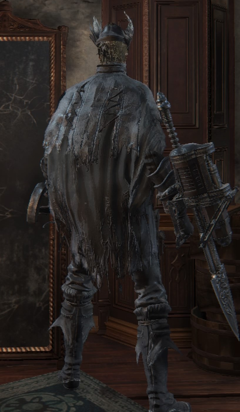 | 灰の狩装束 | 古狩人デュラの狩装束 灰に塗れ、それは血を避ける儀式の意味を持つ 工房の異端「火薬庫」との交わりで知られるデュラは ごく優しく、そして愚かな男だった 故に旧市街の惨状に絶望し、狩人であることを止めたのだ | |||||||||||