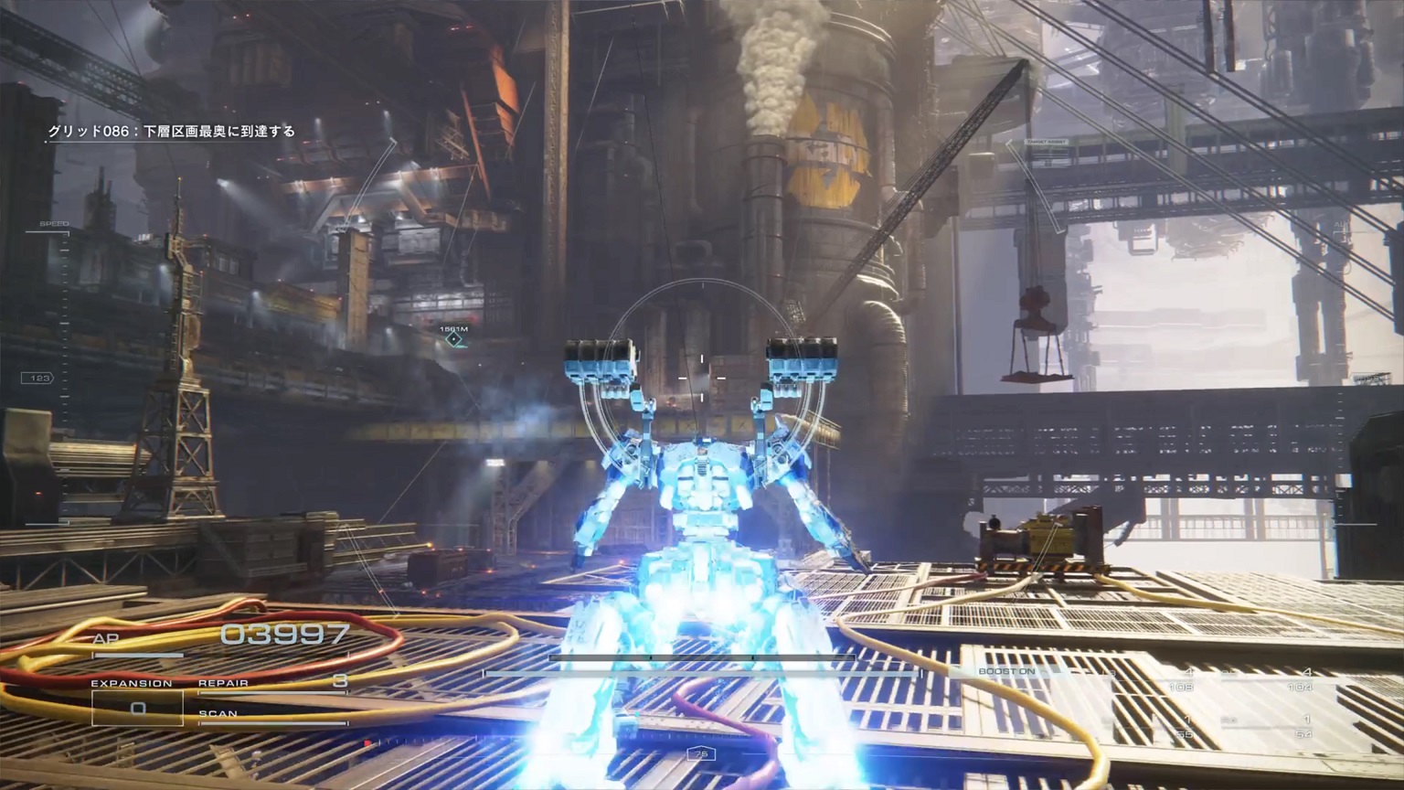 - 4機の無人ACを引き連れたボスACとまず1戦。まだ真っ当なAC戦。前座だけにリペアは使わない。