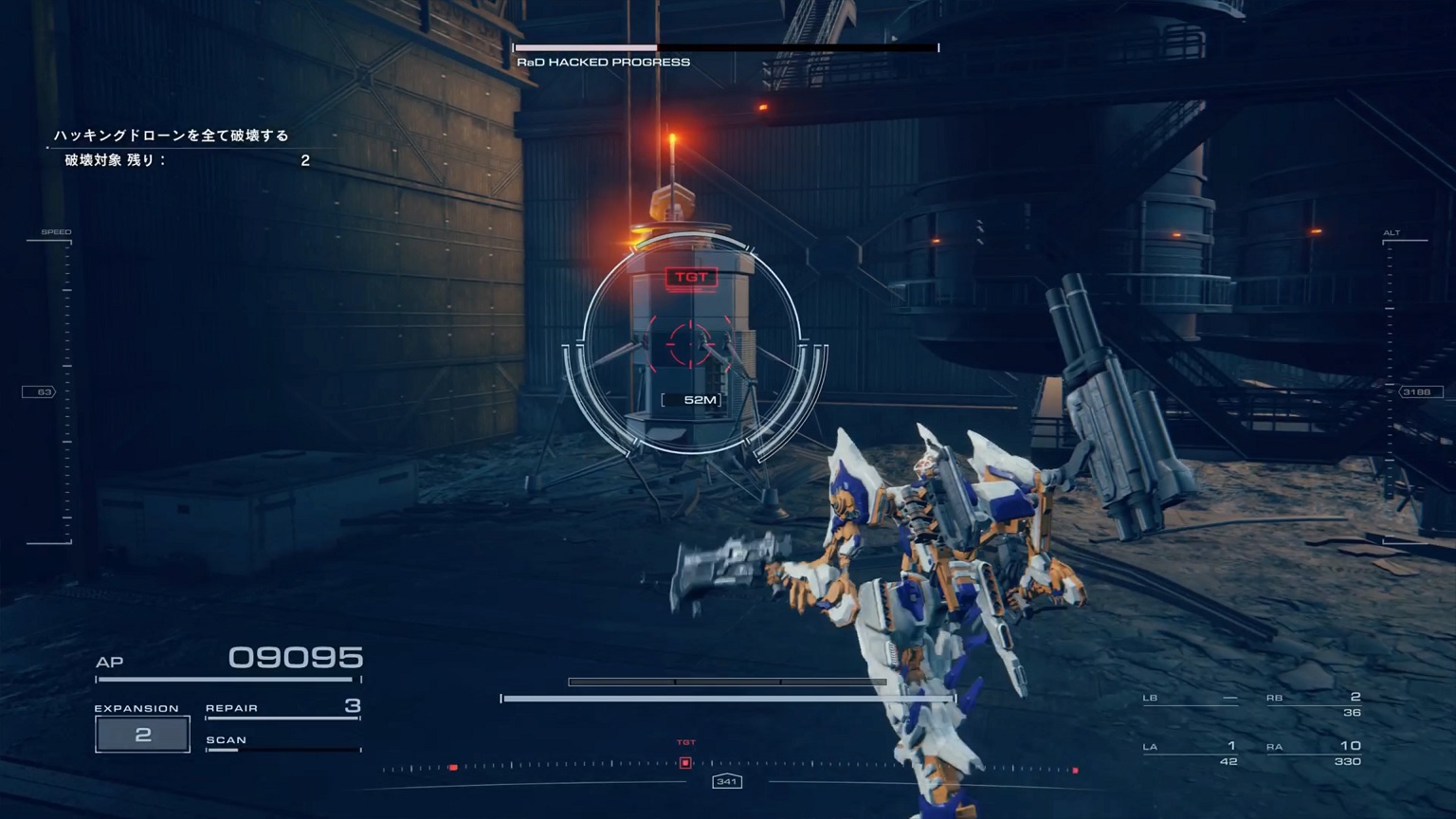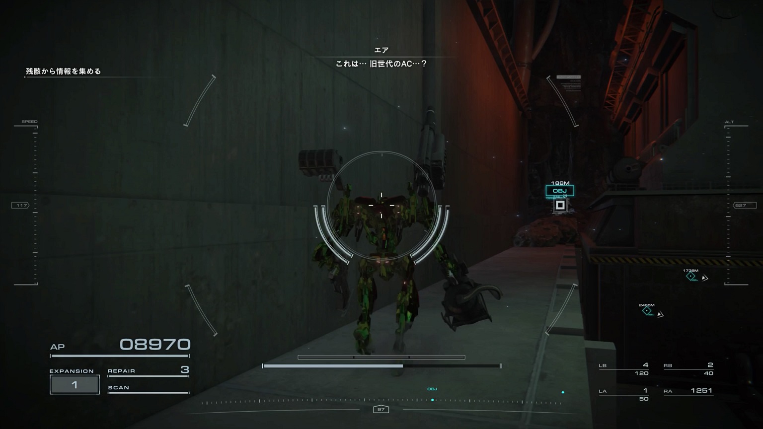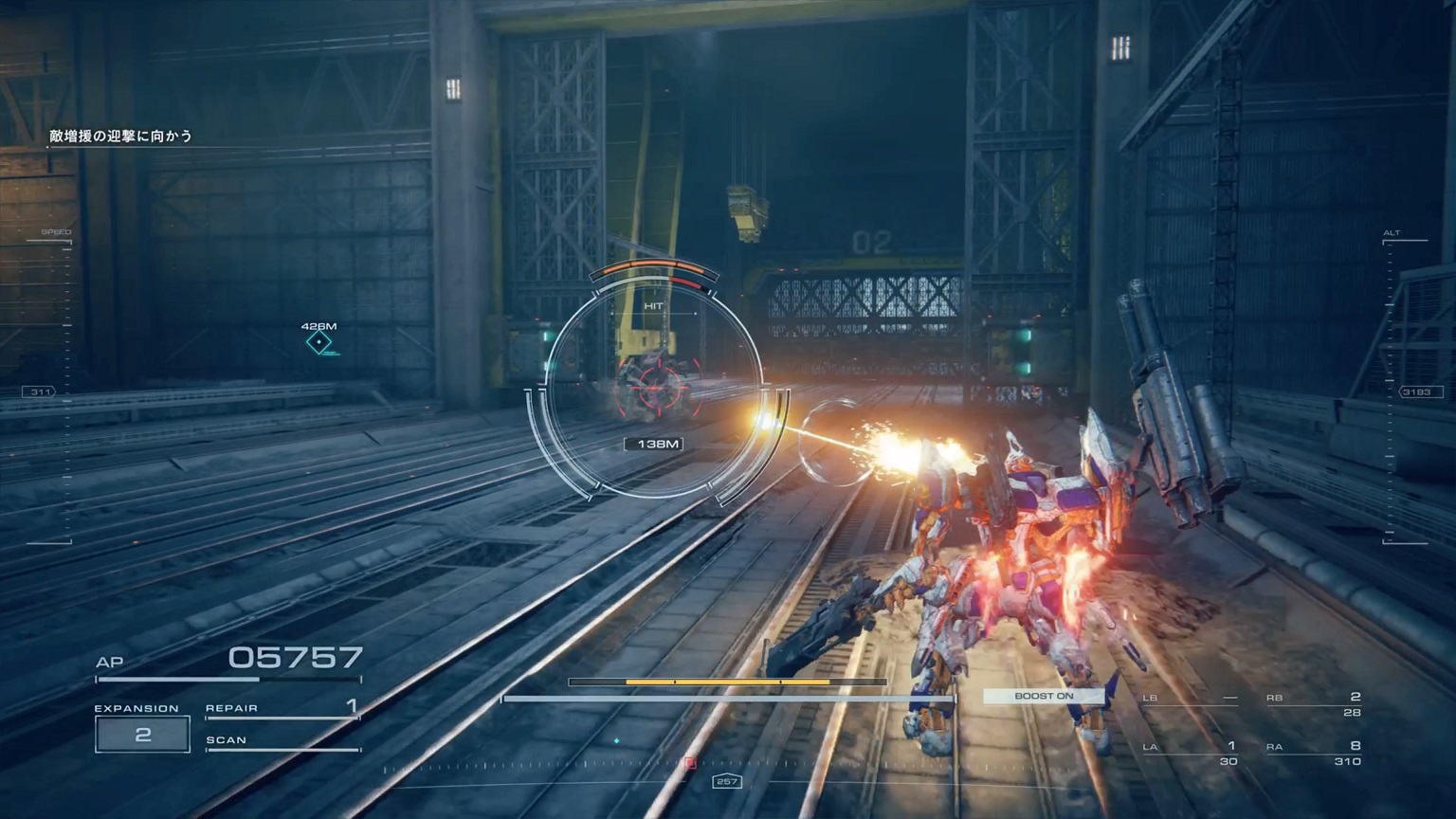 - 4機の無人ACを引き連れたボスACとまず1戦。まだ真っ当なAC戦。前座だけにリペアは使わない。