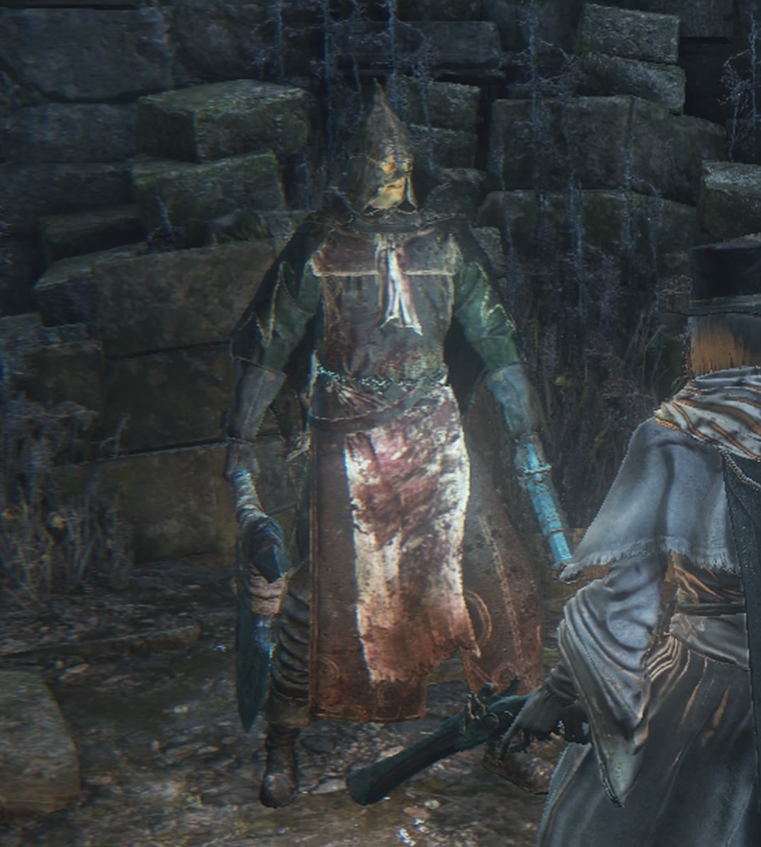 - 武器は仕込み杖と教会の連装銃。更にエーブリエタースの先触れや彼方への呼びかけを使用するなど、聖歌隊との繋がりを感じさせる。ただし衣装は教会の白装束一式。