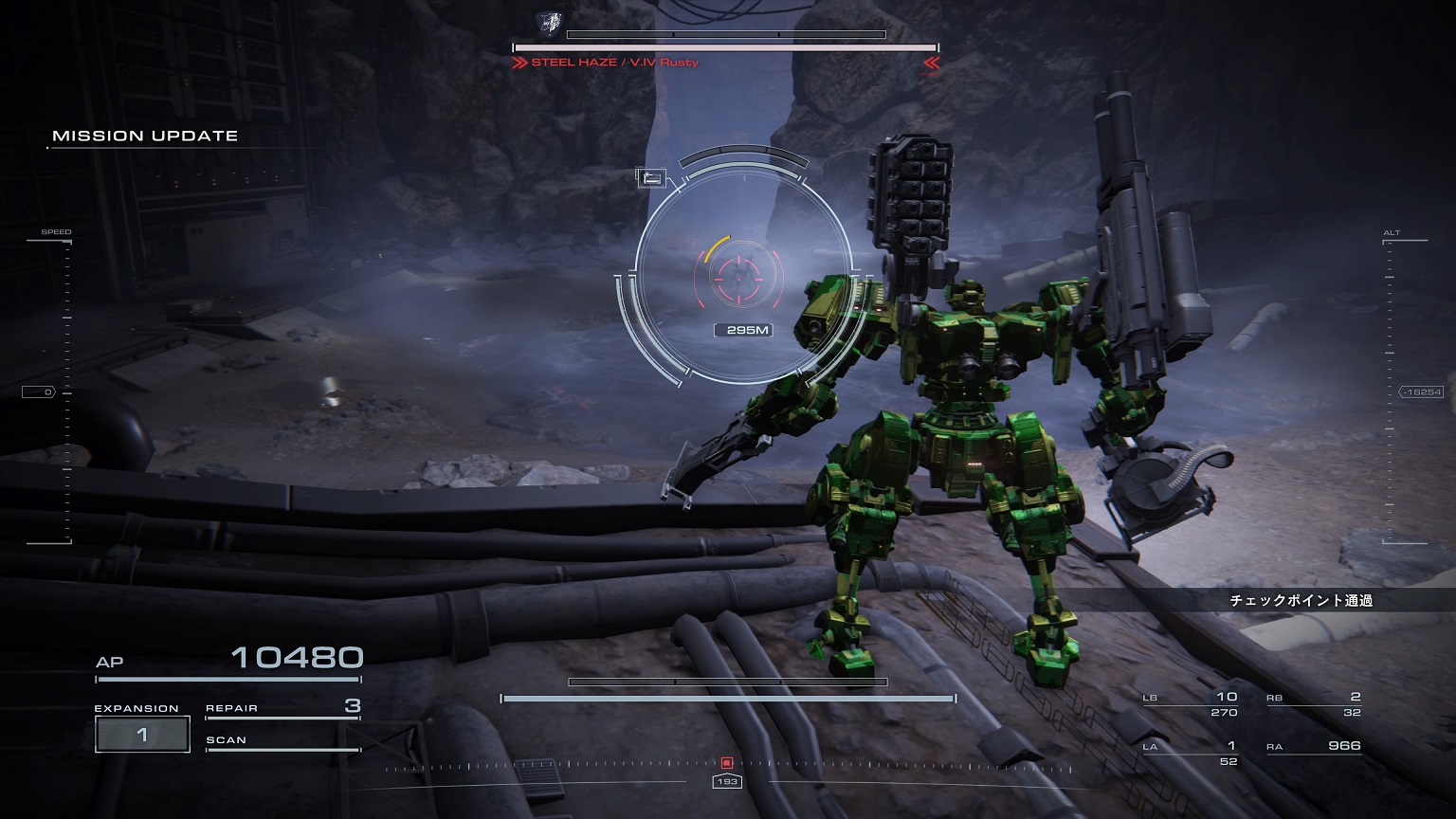 - 4機の無人ACを引き連れたボスACとまず1戦。まだ真っ当なAC戦。前座だけにリペアは使わない。