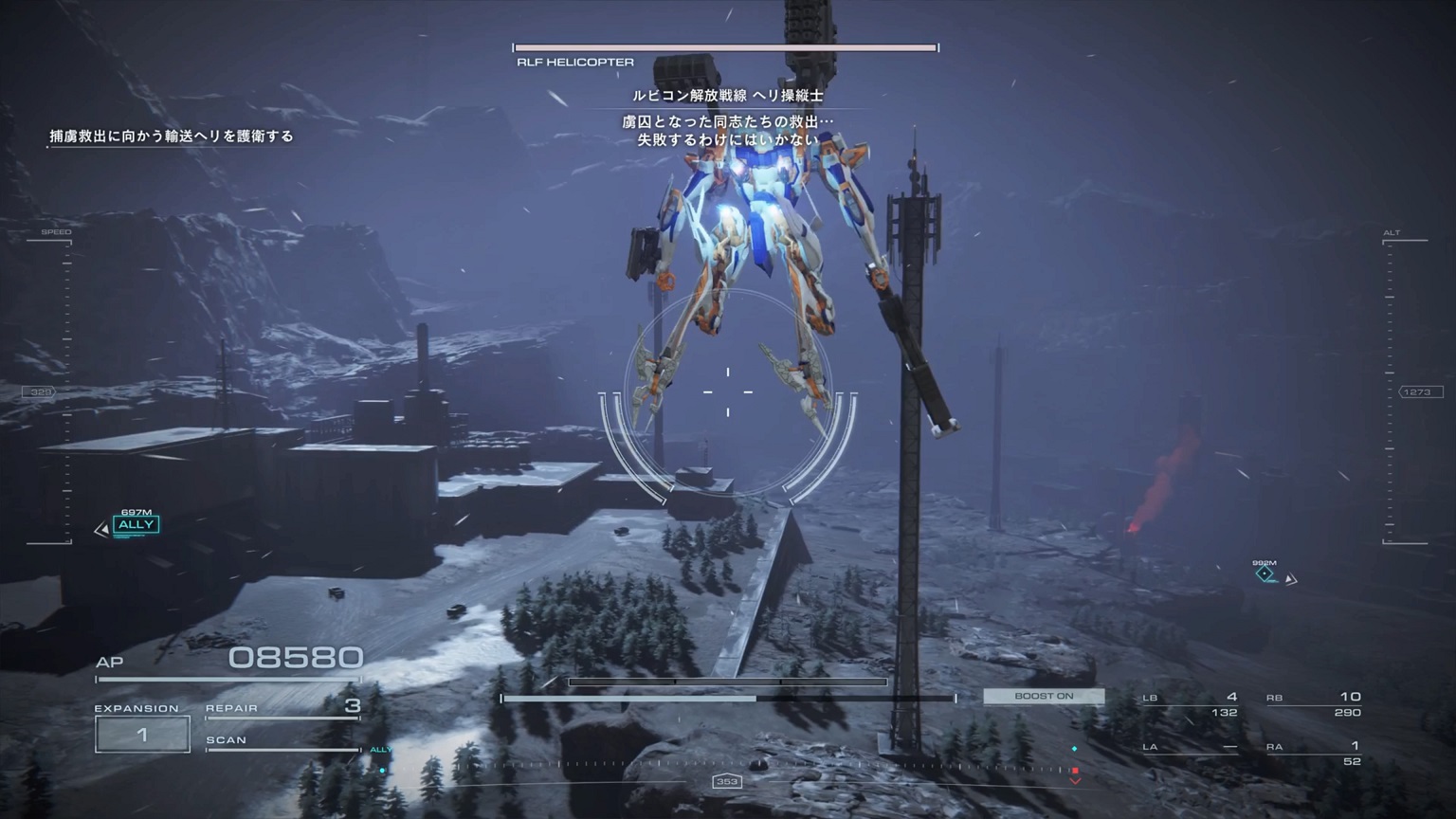 - 4機の無人ACを引き連れたボスACとまず1戦。まだ真っ当なAC戦。前座だけにリペアは使わない。