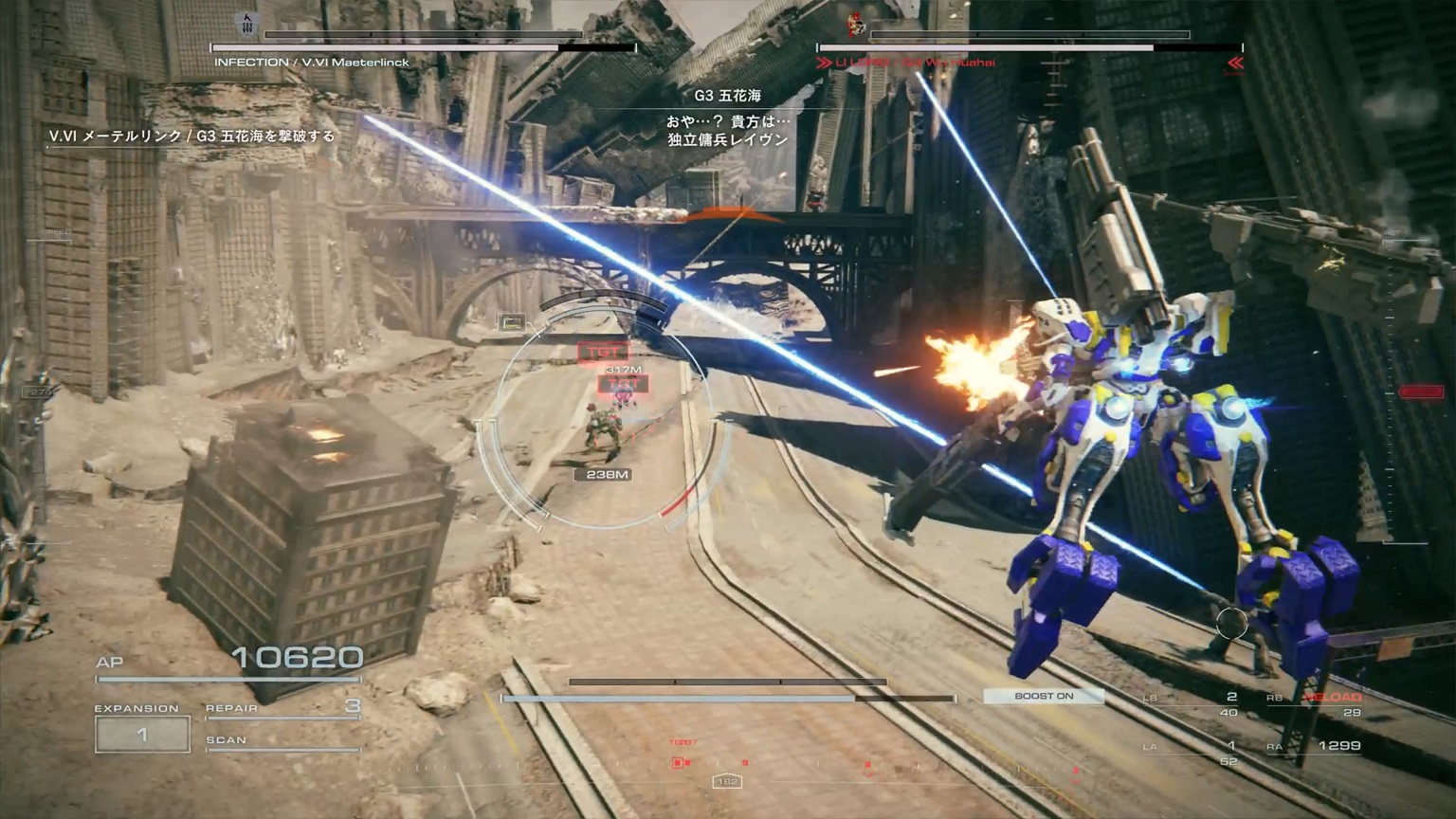 - 4機の無人ACを引き連れたボスACとまず1戦。まだ真っ当なAC戦。前座だけにリペアは使わない。