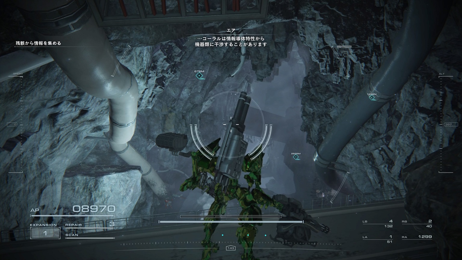 - 4機の無人ACを引き連れたボスACとまず1戦。まだ真っ当なAC戦。前座だけにリペアは使わない。