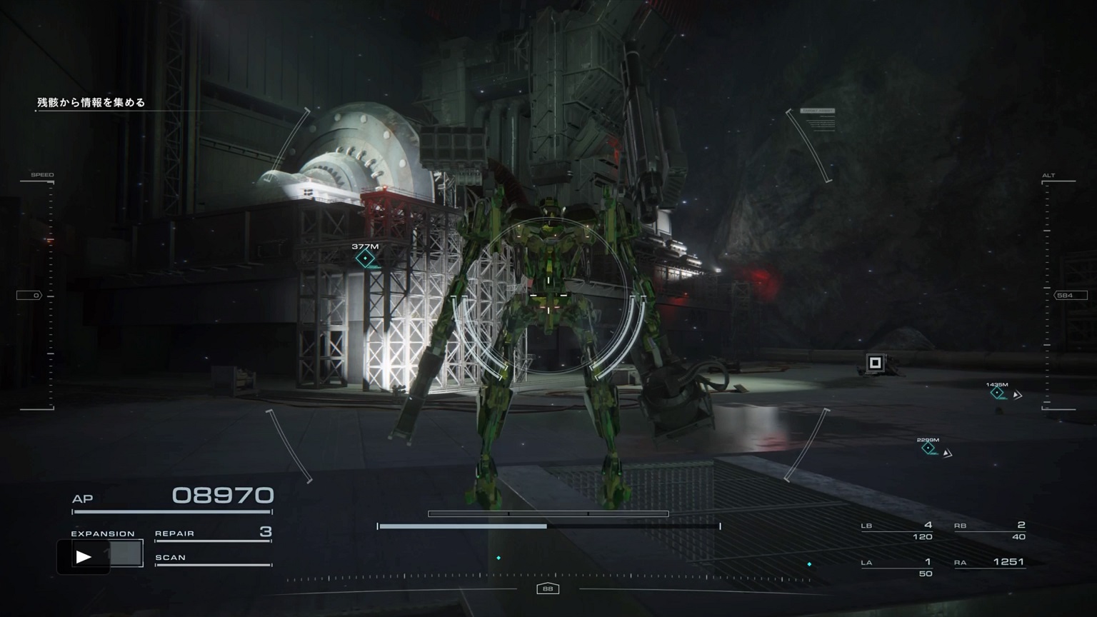 - 4機の無人ACを引き連れたボスACとまず1戦。まだ真っ当なAC戦。前座だけにリペアは使わない。