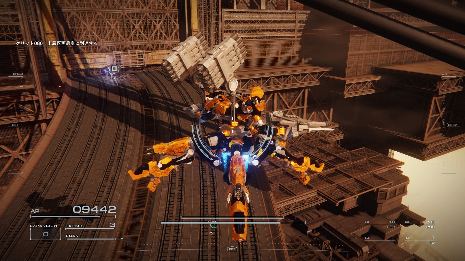 - 4機の無人ACを引き連れたボスACとまず1戦。まだ真っ当なAC戦。前座だけにリペアは使わない。