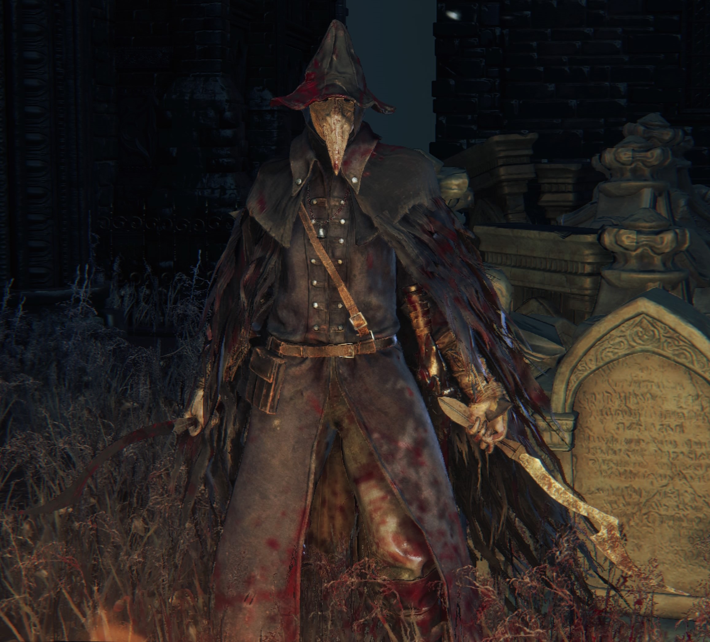 - 武器は仕込み杖と教会の連装銃。更にエーブリエタースの先触れや彼方への呼びかけを使用するなど、聖歌隊との繋がりを感じさせる。ただし衣装は教会の白装束一式。