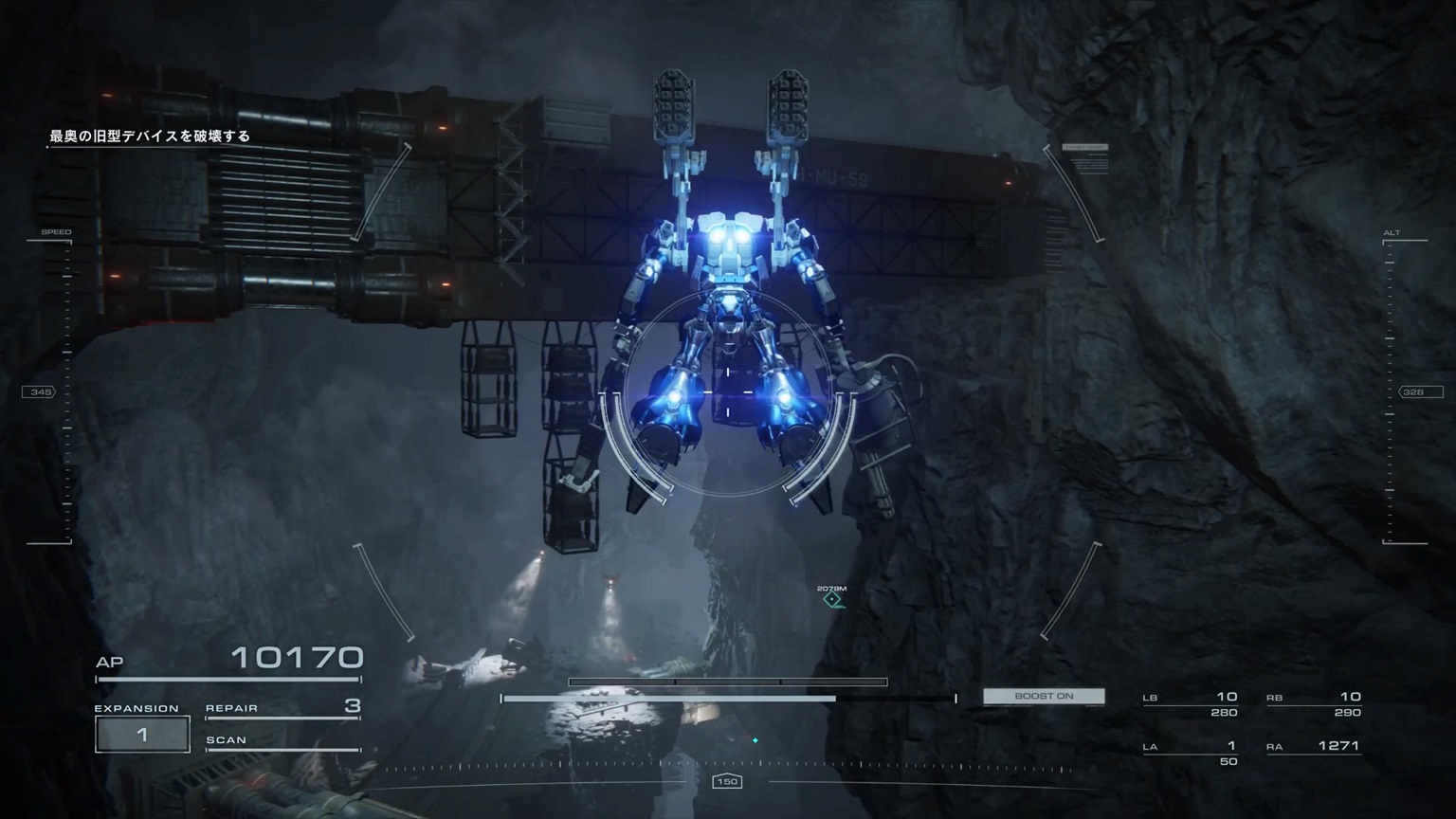 - 4機の無人ACを引き連れたボスACとまず1戦。まだ真っ当なAC戦。前座だけにリペアは使わない。