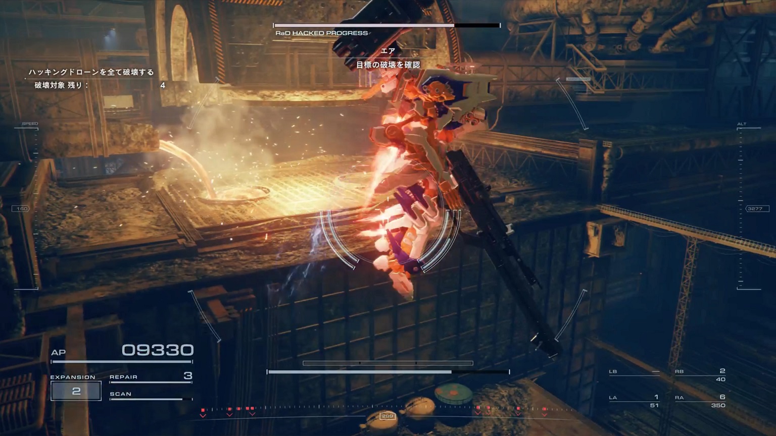 - 4機の無人ACを引き連れたボスACとまず1戦。まだ真っ当なAC戦。前座だけにリペアは使わない。