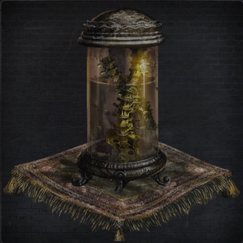 | 手術祭壇の鍵となる、瞳のペンダント 狩人の悪夢には、大聖堂が2つある そして血の河の先、もう1つの大聖堂には かつて医療教会の秘した実験棟があるという そこに入れるのは、瞳を持つに選ばれた医療者 あるいは憐れな患者だけだ 手術祭壇の頭蓋に、瞳を与えたまえ | ||||||||