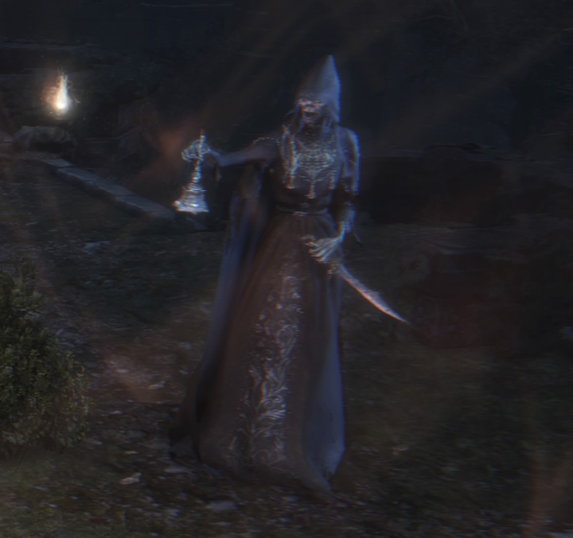 白い布を被って燃えている棒を持った個体は、追加儀法なしの聖杯でも呪われた炎の血晶石をドロップする