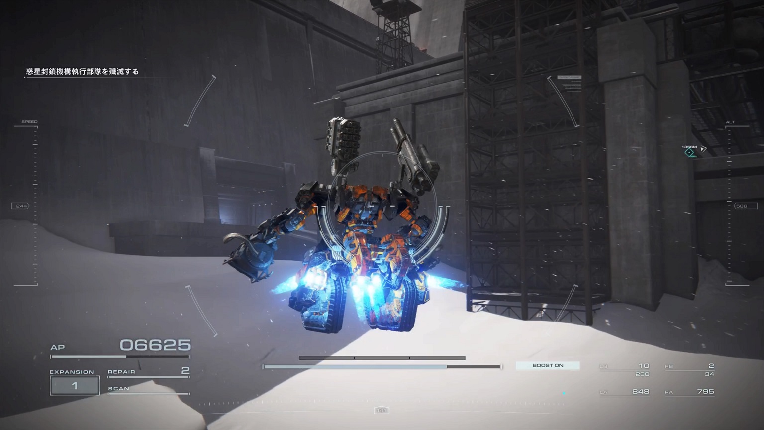 - 4機の無人ACを引き連れたボスACとまず1戦。まだ真っ当なAC戦。前座だけにリペアは使わない。