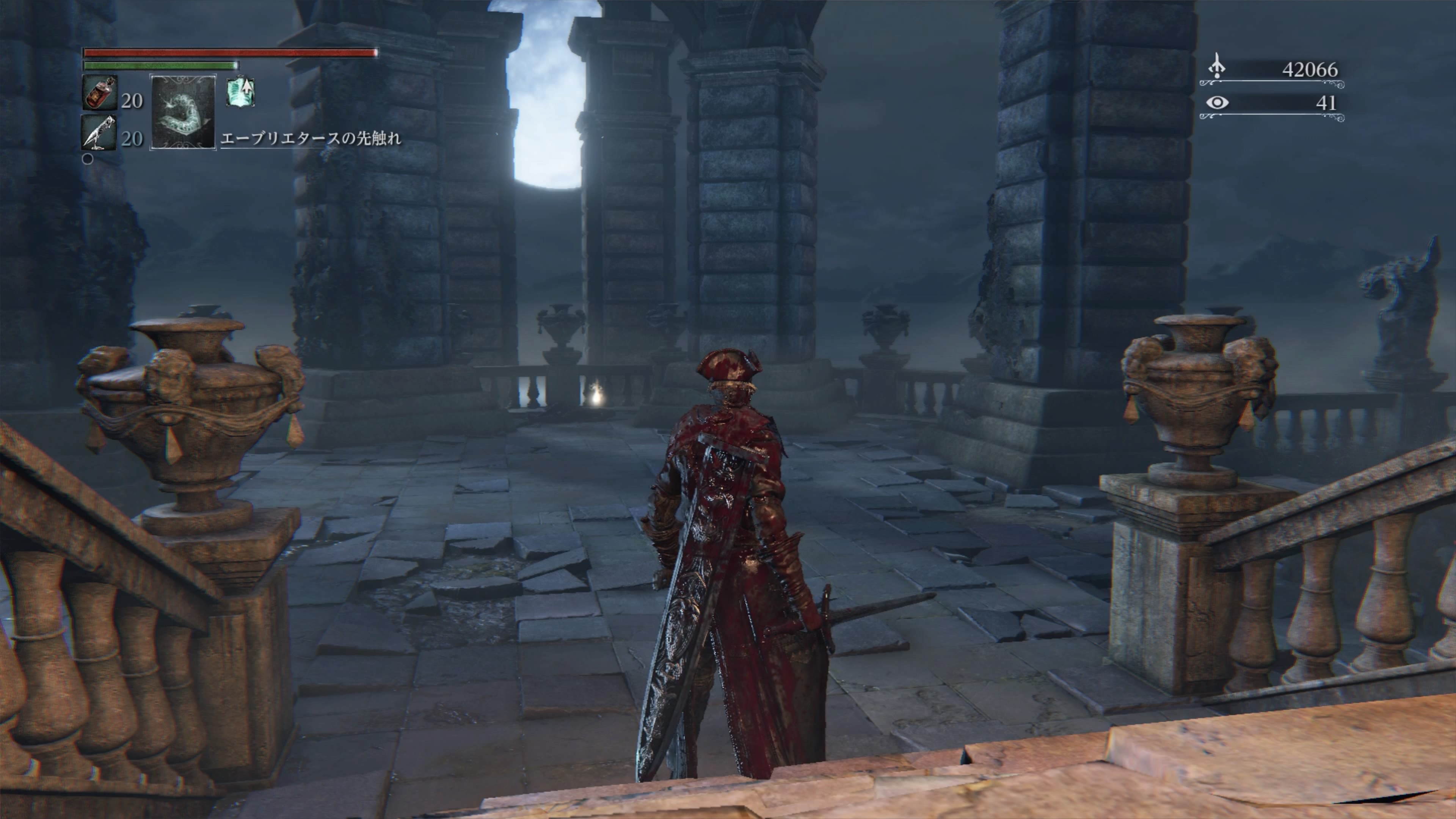 - なお、月見台の手前でメンシスのダミアーン、もしくは連盟のカレルを装備することで灯りすぐ近くの段差の下と、学徒衣装がある宝箱の近くでマダラスの弟と古狩人ヘンリックを召喚できるが、何れもロマ第2形態の隕石攻撃で即死しがちなので弾避け以上の役には立ってくれない。