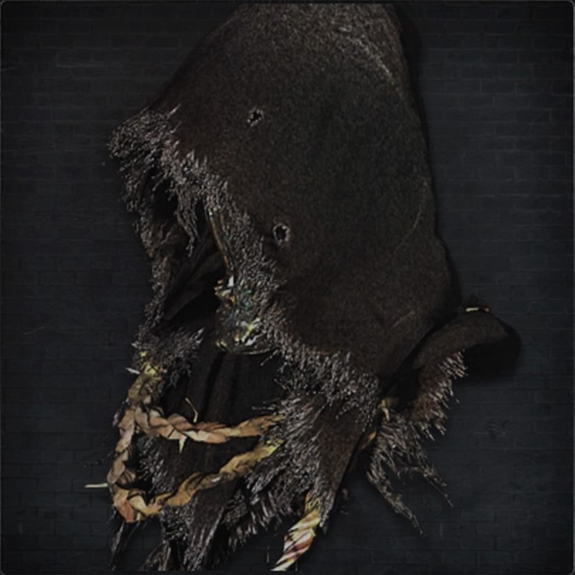 | 黒フードの鉄兜 | 隠し街の狩人たちが被る鉄兜 隠し街を主宰する「メンシス学派」に通じる彼らは 狩人とは名ばかりの人さらい共であり 黒いフードを目深に被っている 狩人の衣装としては珍しく金属製の防具であり 物理攻撃に限れば防御効果は高め | |||||||||||
