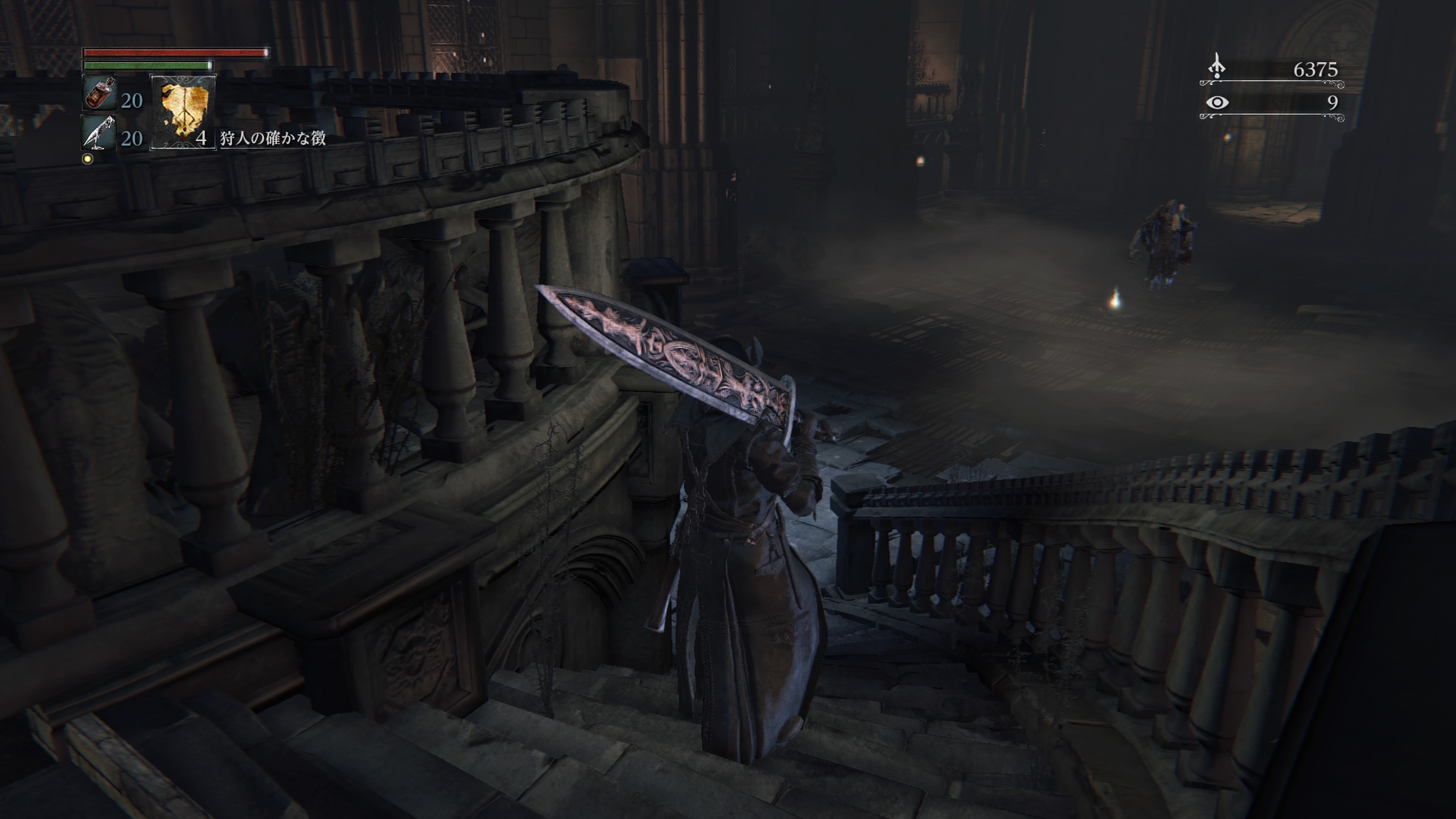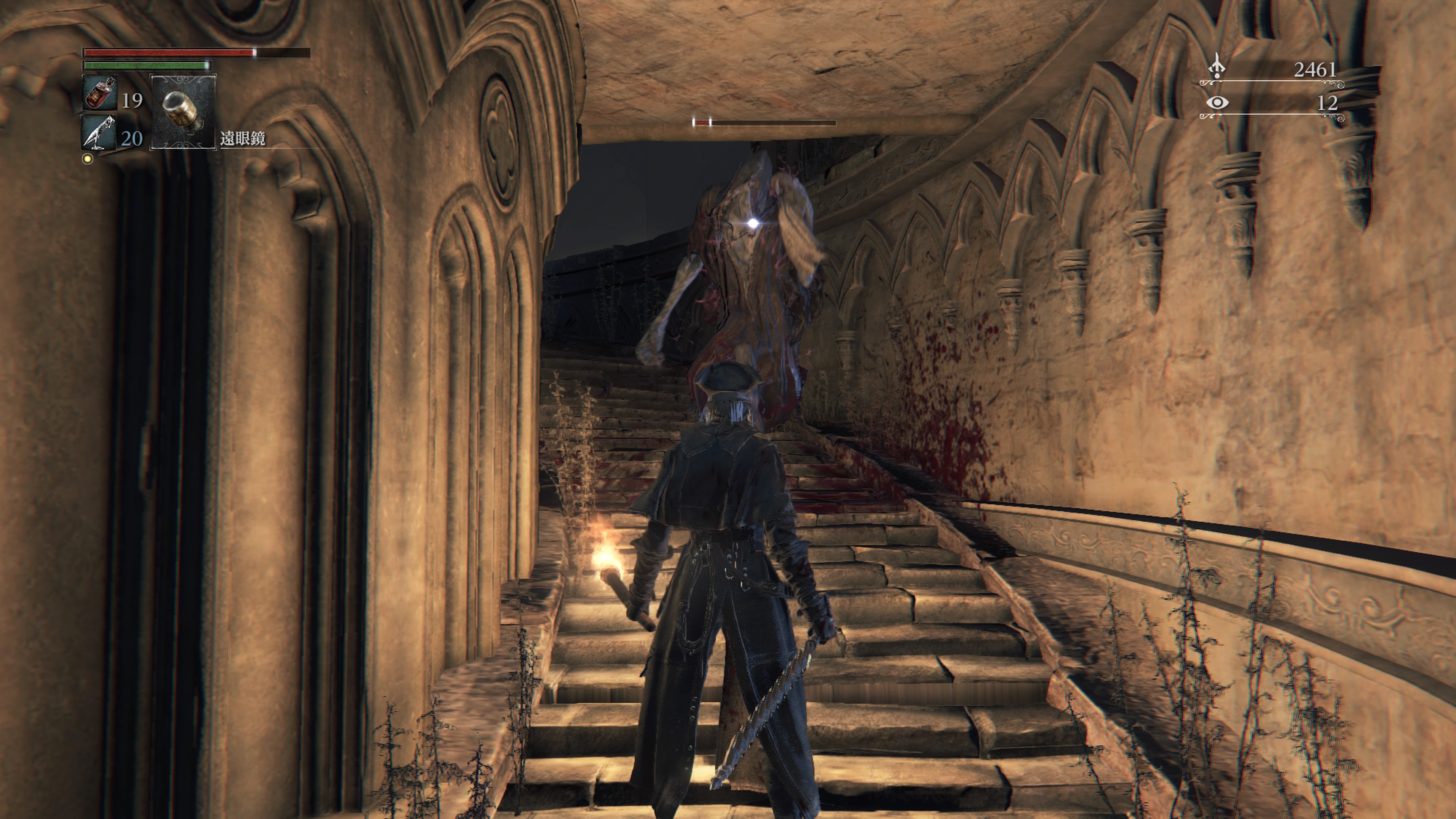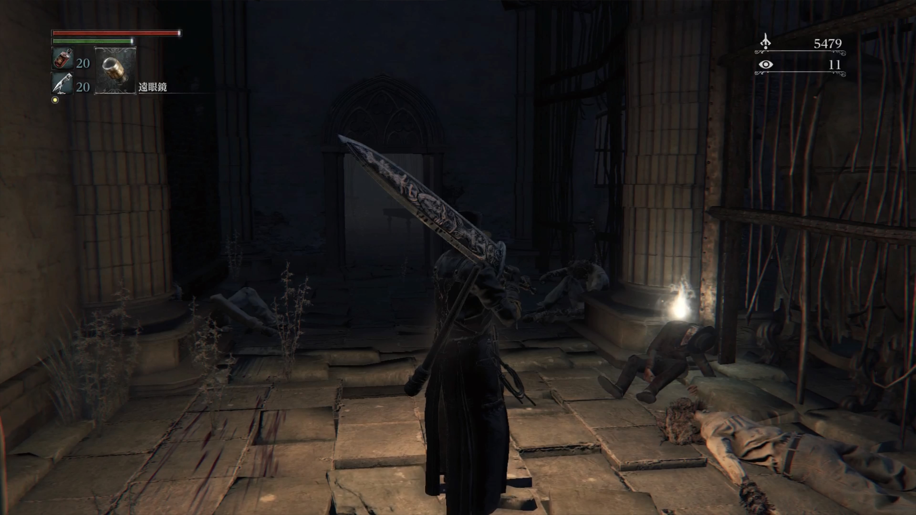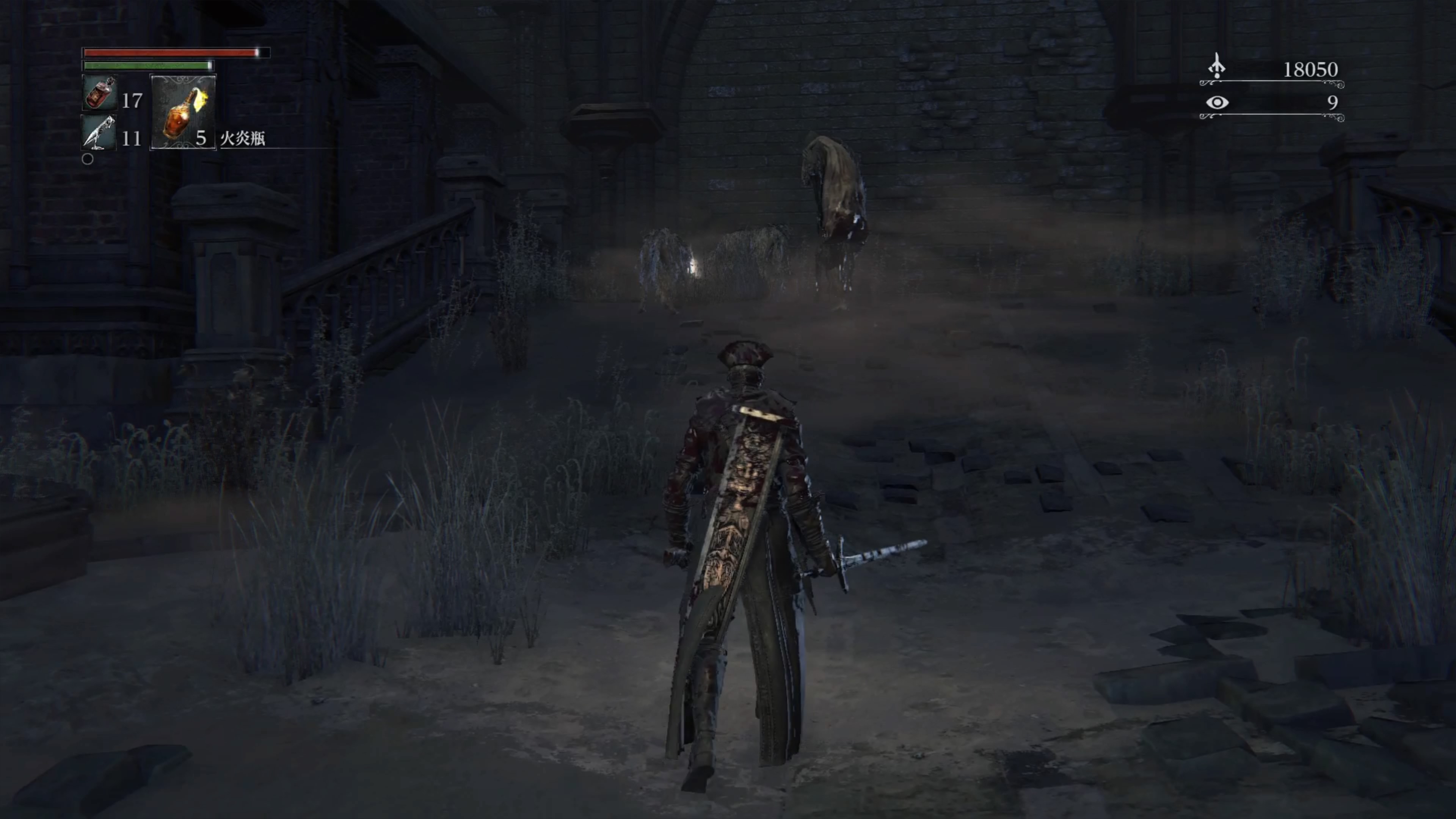 - 灯りで目覚めてから間近の人さらい2体を倒すと合計血の遺志約3000と、1体につき血石の欠片2つか血石の二欠片1つ、稀に雷光ヤスリをドロップする。