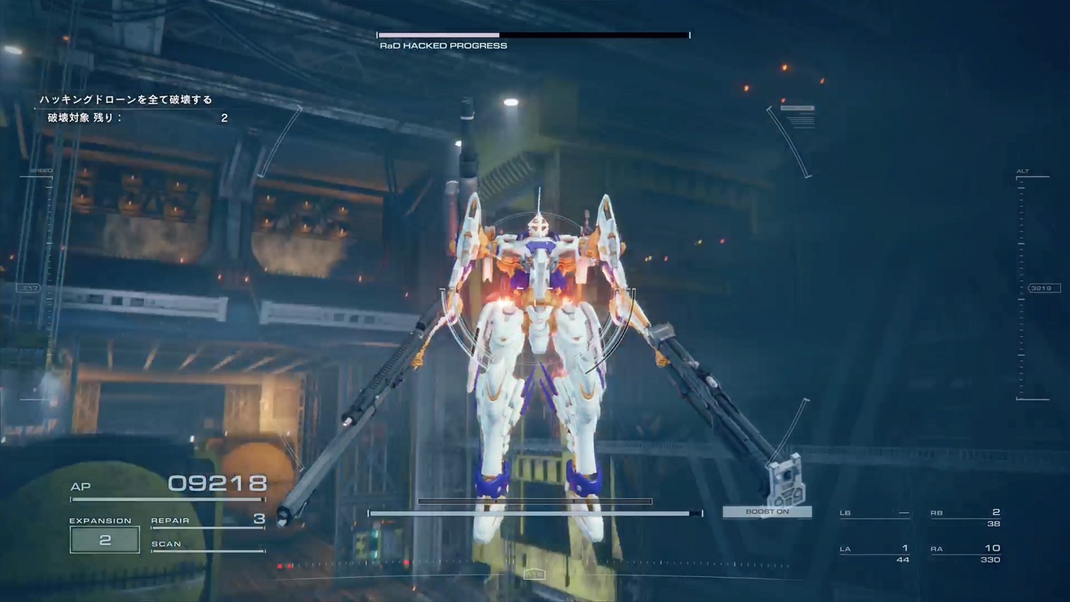 - 4機の無人ACを引き連れたボスACとまず1戦。まだ真っ当なAC戦。前座だけにリペアは使わない。