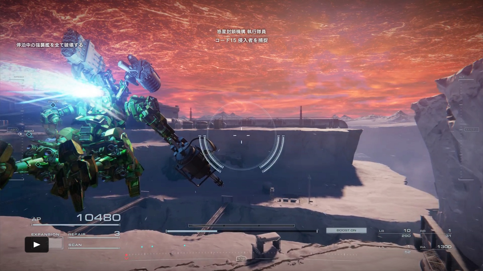 - 4機の無人ACを引き連れたボスACとまず1戦。まだ真っ当なAC戦。前座だけにリペアは使わない。