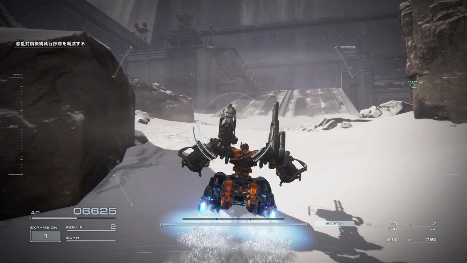 - 4機の無人ACを引き連れたボスACとまず1戦。まだ真っ当なAC戦。前座だけにリペアは使わない。